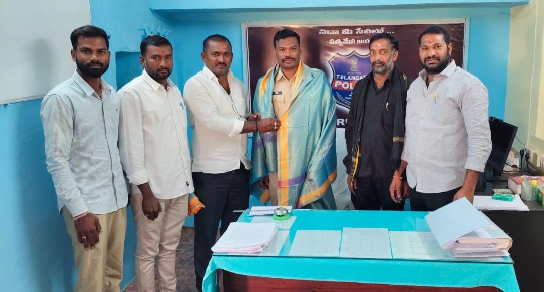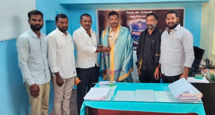 నేటి సాక్షి ప్రతినిధి, రుద్రంగి : ( కోక్కుల వంశీ )రాజన్న సిరిసిల్ల జిల్లా రుద్రంగి మండల ఎస్సై బి.శ్రీనివాస్ ను మానాల గ్రామానికి చెందిన కాంగ్రెస్ పార్టీ మండల అధ్యక్షుడు తూం జలపతి, మానాల గ్రామ ఉపా సర్పంచ్ దాసరి అశోక్, రాష్ట్ర ఓబీసీ సెల్ జాయింట్ సెక్రటరీ జక్కు వంశీ, మానాల కాంగ్రెస్ పార్టీ సర్పంచ్ అభ్యర్థి జక్కుల లక్ష్మీ నర్సయ్య, ముదిరాజ్ యూత్ అధ్యక్షుడు నాంచారి రాకేష్ లు ఎస్సై శ్రీనివాస్ ను మర్యాదపూర్వకంగా కలిసి శాలువాతో సన్మానించారు.ఈ సందర్భంగా కాంగ్రెస్ పార్టీ మండల అధ్యక్షుడు తూం జలపతి మాట్లాడుతూ… రుద్రంగి మండలంలో శాంతి భద్రతలను కాపాడేందుకు కాంగ్రెస్ పార్టీ తరపున అన్ని రకాలుగా పోలీస్ శాఖ వారికి సహకరిస్తామని అన్నారు. ఎస్సై శ్రీనివాస్ మాట్లాడుతూ… చట్టాల పరిరక్షణకు మీ అందరి సహకారం అందించాలని వారిని కోరారు.