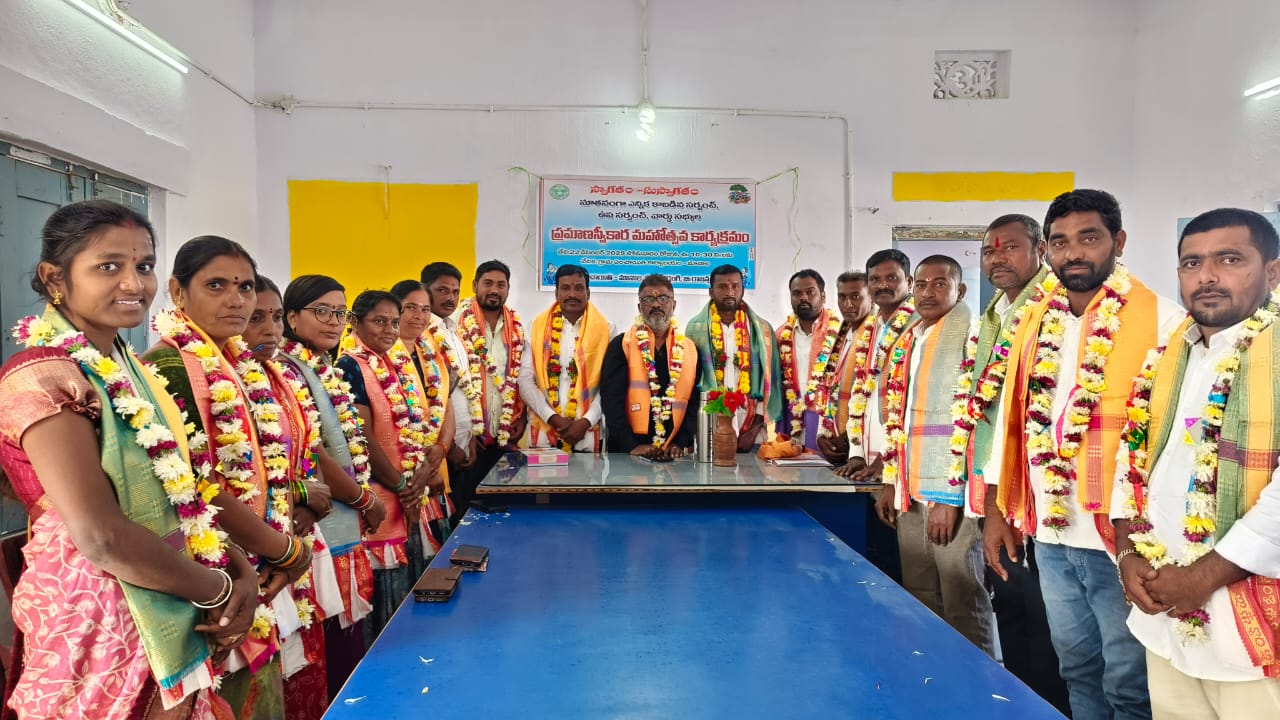 నేటి సాక్షి ప్రతినిధి, రుద్రంగి: కోక్కుల వంశీ రాజన్న సిరిసిల్ల జిల్లా రుద్రంగి మండలంలోని మానాల గ్రామంలో స్థానిక సంస్థల ఎన్నికల్లో సర్పంచ్ గా గెలుపొందిన అభ్యర్థులు సోమవారం గ్రామ పంచాయతీ కార్యాలయంలో బాధ్యతలు స్వీకరించారు. ప్రత్యేక అధికారి ఏంపీవో రాజేశ్వర్ గౌడ్, పంచాయతీ కార్యదర్శి బాబు ఆధ్వర్యంలో నూతనంగా ఎన్నికైన సర్పంచ్ బుర్ర శంకర్ గౌడ్, ఉపా సర్పంచ్ దాసరి అశోక్ లతో పాటు పాలకవర్గ సభ్యులచే ప్రమాణస్వీకారం చేయించారు. ఈ సందర్భంగా గ్రామ ప్రత్యేక అధికారి ఎంపీఓ నూతన సర్పంచ్, ఉపా సర్పంచ్ లకు బాధ్యతలు అప్పగించారు. ప్రమాణస్వీకారం అనంతరం ప్రత్యేక అధికారి, పంచాయతీ కార్యదర్శి,గ్రామస్థులు, ప్రజా ప్రతినిధులు పాలకవర్గాన్ని శాలువతో ఘనంగా సన్మానించారు. ఈ సందర్భంగా నూతనంగా ఎన్నికైన పాలకవర్గం సభ్యులు మాట్లాడుతూ… గ్రామ అభివృద్ధి చేస్తామని గ్రామస్తుల సహకారంతో అన్ని రంగాల్లో ముందుకు వెళ్తామని తెలియజేశారు.