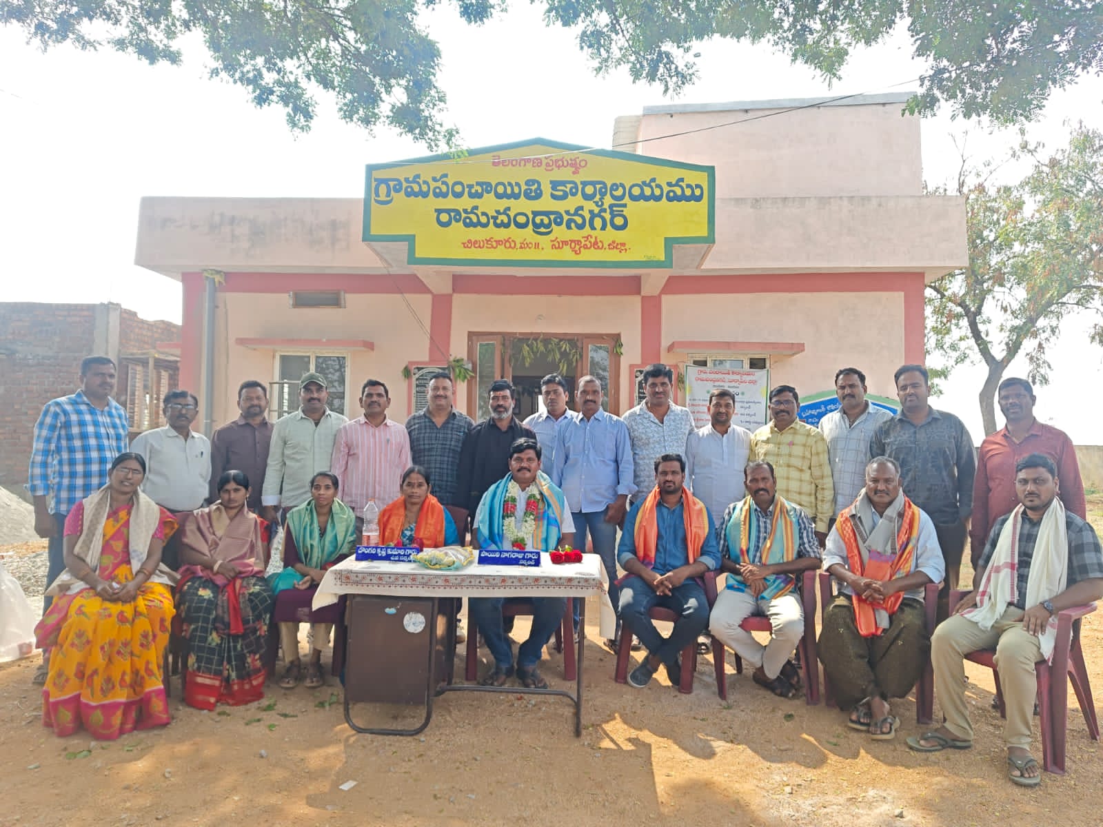 నేటి సాక్షి చిలుకూరు*చిలుకూరు మండలం లోఈరోజు రామచంద్ర నగర్ గ్రామపంచాయతీ భవనం నందు ఉద్యోగ ఉపాధ్యాయ మిత్ర మండలితో నూతనంగా ఎన్నికైన పాలకమండలి సర్పంచ్ పాయిలి నాగరాజు గారు, ఉప సర్పంచ్ దొంగరి కృష్ణకుమారి సోమయ్య గార్లు మరియు వార్డు సభ్యులను సన్మానించడం జరిగింది.* *ఈ కార్యక్రమాన్ని ఉద్దేశించి సర్పంచ్ పాయిలి నాగరాజు గారు ఉద్యోగ ఉపాధ్యాయ మిత్రమండలి ఇచ్చిన సూచనలు సలహా మేరకు 6 నెలల్లో RO WATER ప్లాంట్ ఏర్పాటు చేస్తానని మాట ఇవ్వడం జరిగింది**ఈ కార్యక్రమంలో ఉద్యోగ ఉపాధ్యాయ మిత్రమండలి మరియు గ్రామ పెద్దలు పాల్గొన్నారు.*