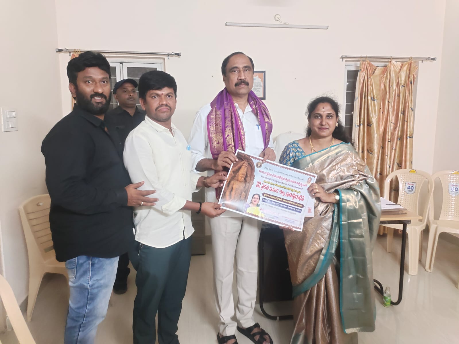నేటి సాక్షి – జగిత్యాల టౌన్ (పూరెళ్ల బాపు)……………………………………కలియుగ వెంకటేశ్వర స్వామి 20 అడుగుల సైకత ఇసుక శిల్ప ప్రతిష్టారాధన కార్యక్రమానికి రావాల్సిందిగా జగిత్యాల ఎమ్మెల్యే డాక్టర్. ఎం. సంజయ్ కుమార్ ను నిర్వాహకులు ఉమారాణి ఆహ్వాన పత్రిక అందజేశారు.ఈనెల 5 నుండి మార్చి 5 వరకు జగిత్యాల జిల్లా కేంద్రంలో ని ఎగ్జీభిషన్ గ్రౌండ్ లో నెలకొల్పే సైకత ఇసుక శిల్ప ఆరాధన కార్యక్రమం ఉంటుందని నిర్వాహకులు వేముల ఉమారాణి తెలిపారు. కార్యక్రమ ప్రధాన ఆర్గనైజర్ వేముల ఉమారాణి బుధవారం ఎమ్మెల్యే సంజయ్ కుమార్ ను మర్యాద పూర్వకంగా కలిసి 3డి సైకత ఇసుక శిల్ప ప్రతిష్టారాధన కార్యక్రమానికి రావాలని ఆహ్వాన పత్రిక అందజేశారు.అలాగే ప్రముఖ వ్యాపారావేత్త, బీజేపీ నాయకులు కొండా లక్ష్మణ్ ఇంటికి వెళ్లిన ఉమారాణి, కొండ్ర రమాదేవి లు ఆహ్వానపత్రిక అందించి ప్రతిష్టారాధనకు రావాలని కోరారు.