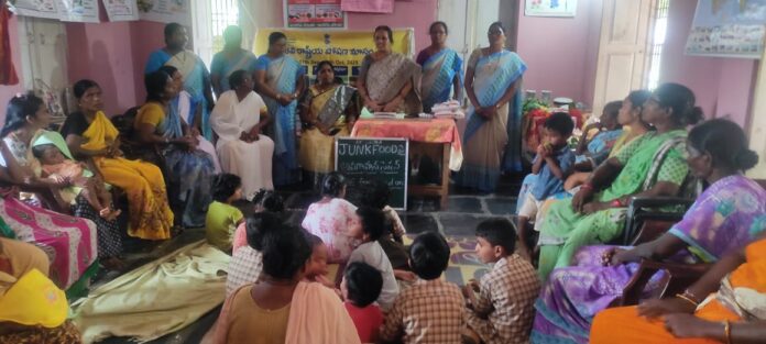 నేటి సాక్షి, బాపట్ల జిల్లా ( బాపట్ల టౌన్)బాపట్ల ప్రాజెక్ట్ పడమర బాపట్ల సెక్టార్ స్టువర్టుపురం నందు సిడిపిఓ లక్ష్మీపార్వతి ఆధ్వర్యంలో పోషకాహార మాసోత్సవాలు ఘనంగా జరిగాయి.ఇందులో భాగంగా గురువారం నాడు జంక్ ఫుడ్ పై అవగాహన కలిగించారు. అలాగే గర్భిణీలకు శ్రీమంతాలు ఎంతో వేడుకగా జరిపారు. అనంతరం సిడిపిఓ మాట్లాడుతూ ప్రతి ఒక్కరూ ఆహారం తీసుకునే ముందు వంట చేసేముందు తప్పక హ్యాండ్ వాష్ చేయాలని లేకపోతే మనకు కనిపించని క్రిముల వలన అనారోగ్యాల బారిన పడతామని సిడిపిఓ వివరించారు.సూపర్వైజర్ పద్మావతి మాట్లాడుతూ పిల్లలకు సరియైన సమతుల్యమైన ఆహారం అందకపోతే వయసుకు తగిన ఎత్తు బరువు ఉండరని కొంతమందిలో ఒబేసిటీ బారిన పడే అవకాశం కూడా ఉన్నదనీ తెలియజేశారు. అంగన్వాడీ కేంద్రాలకి మూడు నుంచి ఆరు సంవత్సరాల పిల్లల్ని క్రమం తప్పకుండా పంపించాలని కేంద్రాలలో ఆటపాటలతో విద్య మరియు అన్ని రకాలైనటువంటి అభివృద్ధిలు పిల్లలలో కలుగుతాయనితల్లులకు అవగాహన కల్పించారు. కార్యక్రమంలో సూపర్వైజర్ పద్మావతి అంగన్వాడీ కార్యకర్తలు శేషు కుమారి, ఫాతిమా, సుధా, ఇందిరా, స్వాతి, నాగలక్ష్మి, పద్మావతి, అంగన్వాడి ఆయాలు పెద్ద ఎత్తున లబ్ధిదారులు పాల్గొన్నారు