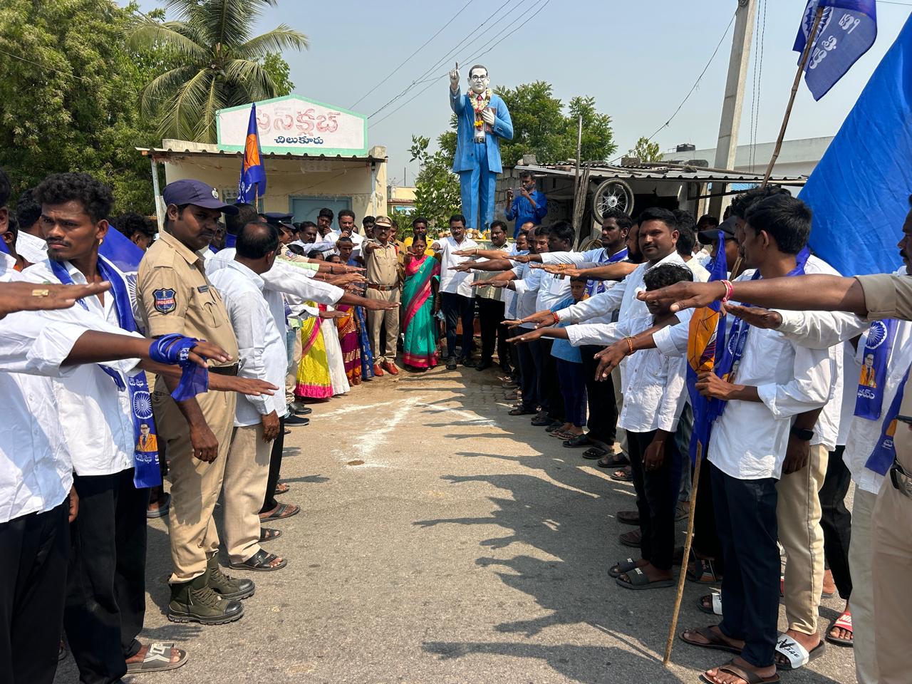 నేటి సాక్షి చిలుకూరు సూర్యాపేట జిల్లా చిలుకూరు మండల కేంద్రంలోరాష్ట్ర ప్రభుత్వం చేపడుతున్న “అరైవ్ అలైవ్” కార్యక్రమంలో భాగంగా రెండో రోజు, డాక్టర్ బి.ఆర్. అంబేద్కర్ జయంతి సందర్భంగా చిలుకూరు వద్ద రహదారి భద్రతపై ప్రతిజ్ఞ కార్యక్రమం నిర్వహించారు.ఈ కార్యక్రమంలో పలువురు ప్రజాప్రతినిధులు, అధికారులు సమక్షంలో రహదారి భద్రతపై అవగాహన కల్పిస్తూ ప్రతిజ్ఞ చేయించారు. ట్రాఫిక్ నియమాలను తప్పనిసరిగా పాటించడం, హెల్మెట్ మరియు సీట్ బెల్ట్ వినియోగం, మద్యం సేవించి వాహనం నడపకూడదని, అతివేగం ప్రమాదాలకు దారితీస్తుందని ప్రజలకు వివరించారు.ఈ కార్యక్రమానికి సర్పంచ్ కొల్లు పుల్లమ్మ నాగయ్య ఎస్సై హనుమాన్ నాయక్. ఎంపీడీవో నరసింహారావు ఎమ్మార్వో ధ్రువ కుమార్. ఆర్ ఐ లు. శ్వేత సీతారాములు అఖిల పక్ష నాయకులు దళిత నాయకులు, తదితరులు పాల్గొన్నారు.అంబేద్కర్ ఆశయాలను ముందుంచుకుని ప్రజల ప్రాణ భద్రత కోసం ఈ కార్యక్రమాన్ని నిర్వహించినట్లు అధికారులు తెలిపారు.