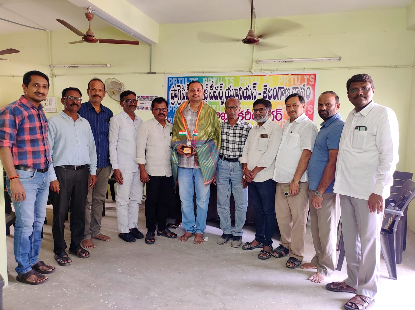 *నేటి సాక్షి (కరీంనగర్)ప్రోగ్రెసివ్ రికగ్నైజ్డ్ టీచర్స్ యూనియన్ తెలంగాణ స్టేట్ రాష్ట్ర అకాడమిక్ గైడెన్స్ కమిటీ సభ్యునిగా నియామకమైన ఉమ్మడి కరీంనగర్ జిల్లాకు చెందిన చిట్నేని శ్రీకాంత్ రావు గారిని కరీంనగర్ జిల్లా శాఖ ఆధ్వర్యంలో ఘనంగా సన్మానించారు. ఈ సందర్భంగా శ్రీకాంత్ రావు మాట్లాడుతూ క్షేత్రస్థాయిలో ఉపాధ్యాయులకు, విద్యావ్యవస్థకు ఏర్పడుతున్న ఇబ్బందులను పరిశీలించి రాష్ట్ర సంఘానికి నివేదించి తద్వారా అధికారులకు దృష్టికి తీసుకువెళ్లి విద్యావ్యవస్థలో మార్పులకు తన వంతు కృషి చేస్తానని తెలిపారు. ఈ కార్యక్రమం లో PRTU TS కరీంనగర్ జిల్లా శాఖ అధ్యక్ష ప్రధాన కార్యదర్శులు అయిలేని కరుణాకర్ రెడ్డి, మర్రి జైపాల్ రెడ్డి పత్రికా సంపాదక వర్గ సభ్యులు అబ్దుల్ జమీల్ రాష్ట్ర అసోసియేట్ అద్యక్షులు ముస్కు తిరుపతిరెడ్డి, మహిపాల్ రెడ్డి సోషల్ మీడియా సభ్యుడు లక్ష్మీనారాయణ సంఘ బాధ్యులు కేతిరి జీవన్ రెడ్డి, ముజీబ్,దొమ్మాట కృష్ణారెడ్డి,అంజద్ తదితరులు పాల్గొన్నారు