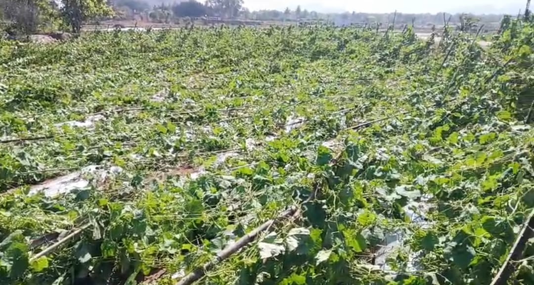 అకాల వర్షంతో నేలకొరిగిన బీరపంట