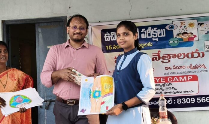 నేటి సాక్షి,బాపట్ల జిల్లా(బాపట్ల టౌన్)అక్షర్ విద్యా భవన్ పాఠశాలలో షణ్ముక నేత్రాలయ సౌజన్యంతో విద్యార్థుల కోసం ఉచిత నేత్ర పరీక్ష శిబిరం నిర్వహించారు. నేత్ర వైద్యులు డా. కార్యంపూడి వెంకటేశ్వర్లు గారి ఆధ్వర్యంలో సిబ్బంది రాజేష్, ఇందిర శ్రమతో ఈ శిబిరం విజయవంతంగా జరిగింది. దాదాపు 30 మంది విద్యార్థుల్లో చూపు సమస్యలు గుర్తించి వారికి తగిన సూచనలు అందించారు. ఈ శిబిరానికి సెంటిస్ ఫార్మాస్యూటికల్ కంపెనీ ప్రాయోజకత్వం వహించింది. సంస్థ ప్రతినిధులు వెంకట నారాయణ, జగదీశ్ పాల్గొని విద్యార్థుల ఉత్సాహాన్ని అభినందించారు. కార్యక్రమంలో భాగంగా కంపెనీ చిత్రలేఖనం పోటీలు నిర్వహించగా విజేతలకు బహుమతులు అందజేశారు. డా. వెంకటేశ్వర్లు కంటి సంరక్షణ, శుభ్రత, వ్యాయామాల ప్రాధాన్యతపై విద్యార్థులకు మార్గదర్శకత్వం ఇచ్చారు. అనంతరం పాఠశాల కరస్పాండెంట్ శ్రీనివాసరాజు ఆయనను శాలువా, మొమెంటోతో సన్మానించారు. ఈ సందర్భంలో ప్రధానోపాధ్యాయురాలు రత్నమాల, ఉపాధ్యాయురాలు పుష్పలత తదితరులు పాల్గొన్నారు.