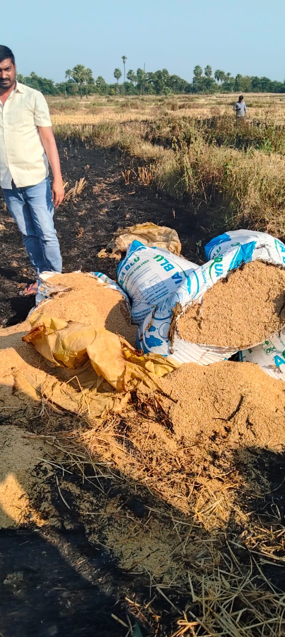 అగ్ని ప్రమాదంలో వరి ధాన్యం దగ్ధం