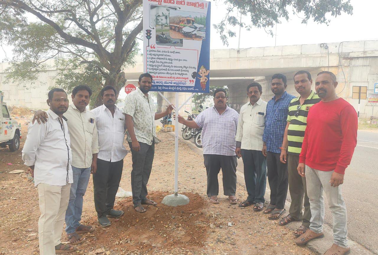 నేటి సాక్షి ,బాపట్ల జిల్లా, (బాపట్ల రూరల్)రోడ్డు ప్రమాదాల నివారణకు హెచ్చరిక బోర్డులు ఎంతగానో ఉపయోగపడతాయని ఫ్రెండ్స్ ఆదర్శ యూత్ ఆర్గనైజేషన్ సభ్యులు కోళ్లపూడి కుమార్ అన్నారు. గురువారం పట్టణంలోని సూర్యలంక రోడ్డు ఫ్లై ఓవర్ బ్రిడ్జి వద్ద రోడ్డు ప్రమాదాల నివారణ హెచ్చరిక బోర్డును ఫ్రెండ్స్ యూత్ ఆర్గనైజేషన్ ఆధ్వర్యంలో ఏర్పాటు చేశారు. ఈ సందర్భంగా కుమార్ మాట్లాడుతూ వాహన దారులు నిదానంగా ప్రయాణించడం ద్వారా రోడ్డు ప్రమాదాలను అరికట్టవచ్చన్నారు.ఆర్గనైజేషన్ అధ్యక్షుడు బండ్రెడ్డి గోపి మాట్లాడుతూ బాపట్ల పట్టణం మీదుగా జాతీయ రహదారులు వెళ్లడం ద్వారా సుధీర్ఘ ప్రాంతాల నుంచి అతివేగంగా వచ్చే వాహనాల కారణంగా ప్రమాదాలు అధికంగా జరుగుతున్నాయని, వాటిని నివారించడానికి వాహనదారులలో అవగాహన కల్పించడం కోసం ఆర్గనైజేషన్ ఆధ్వర్యంలో సభ్యుల సహాయ సహకారాలతో హెచ్చరిక బోర్డులు ఏర్పాటు చేస్తున్నామన్నారు. అతివేగం కారణంగా రహదారులపై ప్రమాదాలు జరుగుతున్న నేపథ్యంలో ప్రభుత్వం అతివేగ నియంత్రణ కోసం సి సి కెమెరాలను ఏర్పాటు చేయాలని కోరారు. ప్రతి ఒక్కరూ బాధ్యతతో ప్రయాణించడం ద్వారా ప్రమాదాలను అరికట్టవచ్చని యువత అతివేగంగా వాహనాలు నడపకుండా అధికారులు తెలిపే సూచనల మేరకు వాహనాలు నడిపితే ప్రమాదాలు జరగకుండా ఉంటాయని చెప్పారు. ఈ కార్యక్రమంలో గౌరవ అధ్యక్షులు వేజెండ్ల శ్రీనివాసరావు, కార్యదర్శి బత్తుల సురేష్, సంయుక్త కార్యదర్శి బొగ్గవరపు శివ, కోశాధికారి జోగి సువర్ణరాజు, సభ్యులు కోడి రెక్క రవి, భీమా కోటేశ్వరరావు,నరాలశెట్టి నాగరాజు,పెద్దమళ్ళు శ్రీకాంత్, తన్నీరు గోపి,కొత్త మల్లికార్జునరావు,చామర్తి సుబ్బారావు తదితరులు పాల్గొన్నారు.