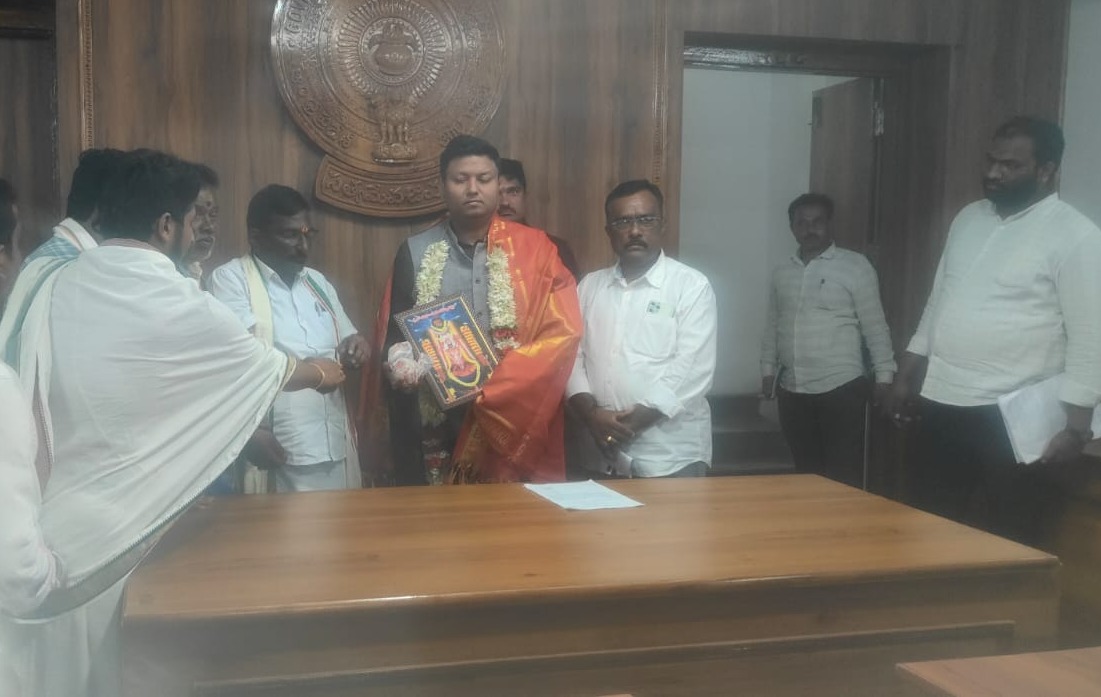 నేటి సాక్షి న్యూస్ చౌడేపల్లి జనవరి 2ప్రముఖ శక్తి క్షేత్రంగా విరాజిల్లుతున్న మరియు కోరిన కోర్కెలు తీర్చే కల్పవల్లి శ్రీ బోయకొండ గంగమ్మ దేవస్థానము .ఉప కమీషనరు మరియు కార్యనిర్వహణాధికారి .నూతనముగా ఏర్పడిన అన్నమయ్య జిల్లా కలెక్టరు నిశాంత్ కుమార్, మర్యాద పూర్వకముగా కలిసి దేవస్థానమునకు శ్రీ అమ్మవారి దర్శనార్ధము విచ్చేయవలసినదిగా ఆహ్వానించారు ఈ కార్యక్రమములో అన్నమయ్య జిల్లా, దేవదాయ శాఖ, సహాయ కమీషనరు శ్రీ విశ్వనాధ్ గారు, దేవస్థాన అర్చకులు మరియు సిబ్బంది పాల్గొన్నారు.