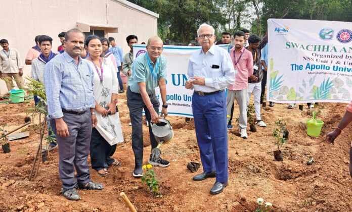నేటి సాక్షి తిరుపతి (బాదూరు బాల)చిత్తూరు, నవంబర్ 15:పర్యావరణ పరిరక్షణకు, క్యాంపస్లో పచ్చదనం పెంపొందించేందుకు ది అపోలో యూనివర్శిటీ ప్రతిష్టాత్మకంగా చేపట్టిన “ట్రీ ప్లాంటేషన్ డ్రైవ్” కార్యక్రమాన్ని ఎన్ఎస్ఎస్ యూనిట్లు, ఈకో క్లబ్ సంయుక్తంగా ఘనంగా నిర్వహించాయి. యూనివర్శిటీ క్యాంపస్లోని వివిధ బ్లాక్ ఆవరణంలోని గ్రీన్ జోన్లో పెద్ద సంఖ్యలో రోజా మొక్కలు నాటారు. ఈ కార్యక్రమానికి ముఖ్య అతిథులుగా విచ్చేసిన వైస్ చాన్సలర్ డాక్టర్ హెచ్. వినోద్ భట్, రిజిస్ట్రార్ ప్రొఫెసర్ ఎం. పోతరాజు మొక్కలు నాటుతూ కార్యక్రమాన్ని ప్రారంభించారు. అనంతరం మాట్లాడిన వీసీ వినోద్ భట్ “ప్రతి విద్యార్థి కనీసం ఒక మొక్క నాటి దానిని సంరక్షించాలి. చెట్లు నాటడం మాత్రమే కాదు, వాటిని పెంచడమే అసలైన బాధ్యత. పచ్చదనం పెరగడం వల్ల క్యాంపస్లో ఆహ్లాదకర వాతావరణం, ఆరోగ్యకరమైన పరిసరాలు ఏర్పడతాయి” అని పేర్కొన్నారు. పర్యావరణ పరిరక్షణ ఒక రోజు కార్యక్రమం కాకుండా, నిరంతర ప్రయత్నం కావాలని, అందులో విద్యార్థులే కీలక పాత్ర పోషించాలని అన్నారు.ఈ కార్యక్రమంలో ఎన్ఎస్ఎస్ ప్రోగ్రాం కోఆర్డినేటర్లు డాక్టర్ ఎస్. హేమాద్రి రెడ్డి, గాయత్రి, స్టూడెంట్స్ ఎఫైర్ కోఆర్డినేటర్ డాక్టర్ షానీ, ఈకో క్లబ్ సభ్యులు, ఎన్ఎస్ఎస్ వాలంటీర్లు, అధ్యాపకులు, నాన్-టిచింగ్ సిబ్బంది, విద్యార్థులు ఉత్సాహంగా పాల్గొన్నారు. .