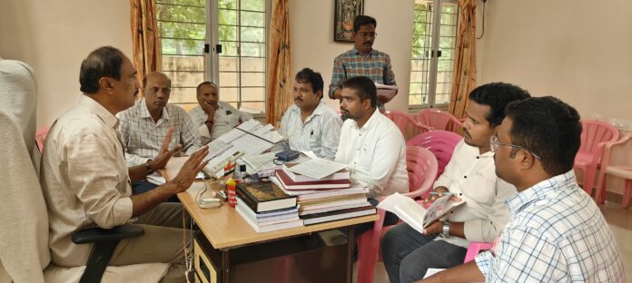 జగిత్యాల టౌన్ (నేటి సాక్షి)(పూరెళ్ల బాపు)…..(అక్టోబర్ 14):జగిత్యాల ఎమ్మెల్యే క్యాంప్ కార్యాలయంలో జగిత్యాల పట్టణం లో అభివృద్ధి పనులపై మున్సిపల్ అధికారులతో సమీక్ష సమావేశం నిర్వహించిన జగిత్యాల శాసనసభ్యులు డా సంజయ్ కుమార్ గారు.జగిత్యాల పట్టణం వివిధ వార్డులలో TUFIDC , జనరల్ ఫండ్ తో చేపట్టిన రోడ్లు డ్రైనేజీ పనులు వర్షాల వల్ల పనులు నిలిచిపోయాయి అట్టి పనులు రేపటి నుండి యదావిధిగా ప్రారంభించాలి.ప్రజలకు అత్యవసరం ఉన్న చోట పనులు త్వరిత గతిన ప్రారంభించాలీ.పలు సమస్యలు,వివిధ కారణాలతో నిలిచిపోయిన కొన్ని పనులు వేరే వార్డులకు,వార్డులో ఇతర ప్రాంతాలకు మార్చాలని అన్నారు.నాణ్యతతో పనులు జరిగే విధంగా చర్యలు తీసుకోవాలని,పూర్తి అయిన పనులకు త్వరిత గతిన బిల్లులు చెల్లించాలని అన్నారు.ఈ కార్యక్రమంలో మాజీ మున్సిపల్ చైర్మన్ గిరి నాగభూషణం,పబ్లిక్ హెల్త్ ఈఈ సంపత్,DE లు ఆనంద్ వరుణ్ AE లు శరన్ అనిల్ తదితరులు పాల్గొన్నారు.