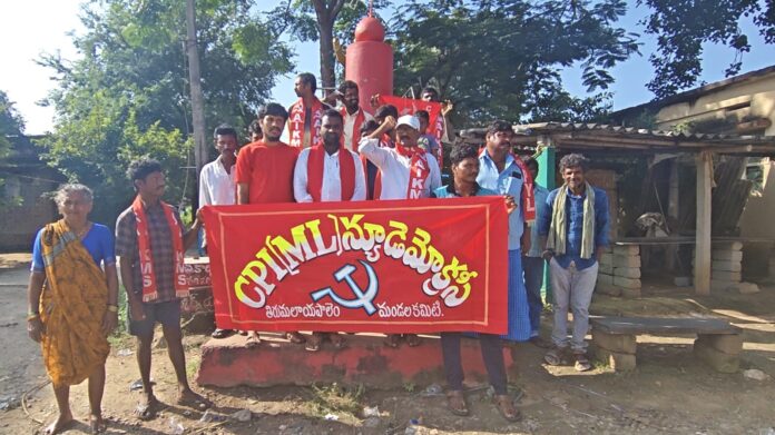 నేటి సాక్షి పాలేరు ,నవంబర్ 1:తిరుమలాయపాలెం మండలం బచ్చోడు గ్రామంలో సీపీఐ (ఎంఎల్) న్యూడెమోక్రసీ నాయకులు అమరవీరుడు గట్టిగండ్ల వెంకన్న స్థూపం వద్ద నివాళులర్పించారు . ఈ సందర్బంగా మండల కార్యదర్శి గొర్రెపాటి రమేష్ మాట్లాడుతూ.. భూమి ,భుక్తి పేద ప్రజల విముక్తి కోసం పోరాడి అమరులైన అమరవీరులు అజేయులని , వారి త్యాగం వృధా కాదని అన్నారు.. దోపిడీ పాలక వర్గాలు పేద ప్రజల కోసం పోరాడుతున్న నాయకులను బూటకపు ఎన్కౌంటర్ పేరిట హతమార్చినంత మాత్రాన విప్లవం అంతం కాదని , దేశంలో దోపిడీ ఉన్నంతవరకు ప్రజా పోరాటాలు వర్ధిల్లుతాయని అన్నారు. ప్రజా పోరాటాలను పాలకులు అణిచి వేయాలని కుట్ర చేసినప్పుడు ప్రజలు సాయుధ తిరుగుబాటు దారి ఎంచుకోక తప్పదని అన్నారు.. వేలాది వీరులను ప్రభుత్వాలు బూటకపు ఎన్కౌంటర్లో హత్య చేసినంత మాత్రాన విప్లవోద్యమం పురోగమించటం తథ్యం అన్నారు. నేడు బిజెపి మతత్వ ప్రభుత్వం ప్రజాస్వామ్యకు హక్కులను ప్రశ్నించే గొంతుకను పోరాడే ఉద్యమాలను ఉక్కుపాదంతో అణిచివేస్తుందని , పేద ప్రజలు ఒకే ఏజెండా మీదకి రావలసిన అవసరం ఉందని విప్లవకారులు అమరవీరుల ఆశయ లక్ష్యం కోసం ఒకే వేదిక మీదికి రావలసిన అవసరం నేటి పరిస్థితులు తెలియజేస్తున్నాయని వారు అన్నారు. పేద ప్రజల రాజ్యమే లక్ష్యంగా విప్లవకారులు ఐక్యం కావలసిన అవశ్యకత నేడు ఉందని తెలిపారు..అమరవీరుల ఆశయ సాధన కోసం అందరం కంకణ బద్ధులమై ముందుకు వెళ్లాల్సిన అవసరం ఉందని , అలా ఉద్యమించినప్పుడే వారికి అర్పించే నిజమైన నివాళి అన్నారు.. ఈ కార్యక్రమంలో డివిజన్ నాయకులు గొర్రెపాటి వీరస్వామి ,గ్రామ కార్యదర్శి ఆడెపు నగేష్,కోటయ్య, వంగూరు రవి , రాంబాబు, వీరయ్య, లెనిన్ ,బద్రి తదితరులు పాల్గొన్నారు.