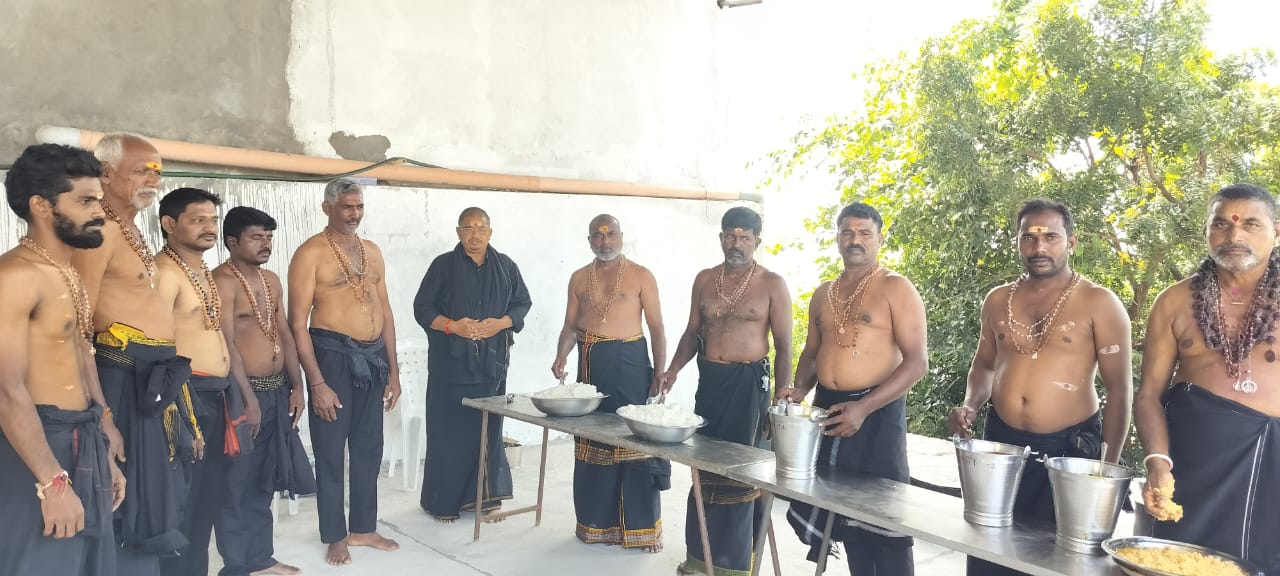నేటి సాక్షి అనంతగిరి సూర్యాపేట జిల్లా అనంతగిరి మండల కేంద్రంలో తెలంగాణ శబరిమలైగా పేరొందిన హరిహరపుత్ర అయ్యప్ప స్వామి దేవాలయంలో అయ్యప్ప దీక్ష పూనిన స్వాములకు 58 రోజులపాటు అన్నదాన కార్యక్రమాన్ని ప్రతి ఏటా నిర్వహించడం ఆనవాయితీగా వస్తుంది.దీనిలో భాగంగా గురువారం అన్నదానం సుమారు 500 మంది స్వాములు బిక్ష సేకరించారనీ ఆలయ చైర్మన్ గురుస్వామి కొండపల్లి వాసు తెలిపారు. ఈ కార్యక్రమంలో. గాదం లింగయ్య. నరసింహారావు. మధు. వెంకటేశ్వర్లు. ఉపేందర్.అభినవ్. శ్రీను. రామకృష్ణ తదితర స్వాములు పాల్గొన్నారు
