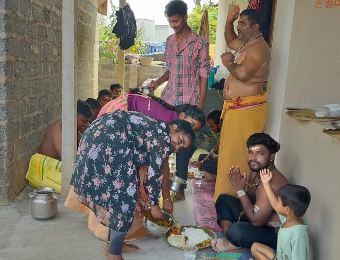 నేటి సాక్షి అనంతగిరి సూర్యాపేట జిల్లా అనంతగిరి మండల పరిధిలోని వెంకట్రాంపురం గ్రామంలో అయ్యప్ప దీక్ష పూనిన స్వాములకు యోగిత. జన్మదిన సందర్భంగా అయ్యప్ప స్వాములకు అన్నదాన కార్యక్రమం ఘనంగా నిర్వహించారు. ఈ కార్యక్రమంలో. గురు స్వామి. సతీష్. సైదులు. మధు అయ్యప్ప స్వాములు పాల్గొన్నారు.