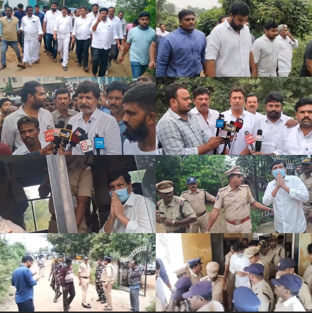 నేటి సాక్షి పత్రిక పాత్రికేయులు, అన్నమయ్య జిల్లా, డిసెంబర్ 03 ~అన్నమయ్య జిల్లా :-: తంబళ్లపల్లె కోర్టు వద్దకు విచ్చేసిన బీసీ నేత, మాజీ మంత్రి జోగి బ్రదర్స్ జోగి రమేష్, జోగి రాములను కలవడానికి స్థానిక నియోజకవర్గ శాసనసభ్యులు పెద్దిరెడ్డి ద్వారకానాథ్ రెడ్డి, మదనపల్లి సమన్వయకర్త నిస్సార్ అహమ్మద్ వచ్చారు. వీరితో పాటు పెద్ద ఎత్తున బీసీ నేతలు, నాయకులు, వైసీపీ శ్రేణులు తరలివచ్చారు. మీకు అండగా మేమున్నామంటూ భరోసా కల్పించారు. తంబళ్లపల్లి కోర్ట్ ప్రాంతం నినాదాలతో దద్దరిల్లింది. ములకలచెరువు నకిలీ మద్యం కేసులో ఎలాంటి సంబంధం లేకున్నా కూడా కూటమినేతలు కక్ష సాధింపుకు పాల్పడుతూ లేని కేసును వైయస్ఆర్ కాంగ్రెస్ పార్టీ మంత్రి జోగి రమేష్, ఆయన సోదరుడు జోగి రాము లపై బనాయించారు. ఈ నకిలీ మద్యం తయారీ వ్యవహారంపై అసలు దోషి టీడీపీ తంబళ్లపల్లి ఇంచార్జ్ నేత దాసరపల్లి జయచంద్రారెడ్డిని వదిలిపెట్టి చేయని నేరాన్ని అన్నదమ్ములపై మోపి కూటమి నేతలు అరెస్ట్ చేయించారు. ఈ కేసుకు సంబంధించి మంగళవారం తంబళ్లపల్లి కోర్టుకు జోగి రమేష్, జోగి రాములను కట్టుదిట్టమైన భద్రత ఏర్పాట్ల నడుమ కోర్టులో హాజరు పరిచారు. తంబళ్లపల్లి కోర్టు వీరికి 14 రోజులు రిమాండ్ విధిస్తూ తీర్పు ఇచ్చింది. మళ్లీ వీళ్లను భారీ భద్రత నడుమ నెల్లూరు జైలుకు తరలించారు. ములకలచెరువు కల్తీ మద్యం కేసులో జోగి బ్రదర్స్ ను ఎక్సైజ్ శాఖ పోలీసులు 32, 33 నిందితులుగా చేర్చారు. ఈ సందర్భంగా న్యాయస్థానం వెలుపల తంబళ్లపల్లి శాసనసభ్యులు పెద్దిరెడ్డి ద్వారకానాథ్ రెడ్డి, మదనపల్లి నియోజకవర్గ సమన్వయకర్త నిస్సార్ అహ్మద్ మీడియాతో మాట్లాడారు. ములకలచెరువు నకిలీ మద్యం కేసులో తంబళ్లపల్లి టీడీపీ నేత దాసరపల్లి జయచంద్రారెడ్డి ని వదిలిపెట్టి మాజీ మంత్రి, బీసీ నేత జోగి రమేష్ ను మరియు ఆయన తమ్ముడిని అరెస్ట్ చేయడం దారుణమన్నారు. సీబీఐ ద్వారా దర్యాప్తు చేయిస్తే అసలు దోషులు బయటకు వస్తారని కానీ కూటమి నేతలు అసలు దోషి దాసరపల్లి జయచంద్రారెడ్డిని దాచిపెట్టి వైయస్ఆర్ కాంగ్రెస్ పార్టీ నేతలపై కక్ష సాధింపు ధోరణికి పాల్పడుతున్నారని అసలు జోగి రమేష్ కు తంబళ్లపల్లి నియోజకవర్గానికి సంబంధం ఏంటని ప్రశ్నించారు. అసలు ఆయనకు తంబళ్లపల్లిలో ఏమి సంబంధం ఉందని ద్వారకానాథ్ రెడ్డి ఫైర్ అయ్యారు. అసలు దోషి జయచంద్రారెడ్డి ని ఇంత వరకు ఎందుకు అరెస్ట్ చేయలేదని కూటమి ప్రభుత్వాన్ని ప్రశ్నించారు. ఆయనను అరెస్టు చేయకపోవడంలో మీకున్న మైత్రి బంధాన్ని తెలియజేయాలని సూటిగా ప్రశ్నించారు. నకిలీ మద్యం కేసులో అసలైన దోషి జయచంద్రారెడ్డిని వదిలేసి మాజీ మంత్రి, బీసీ వైసీపీ నేత జోగి రమేష్, జోగి రాము లను అరెస్ట్ చేయడం రాజకీయ కుట్రలో భాగమేనని మదనపల్లె వైసీపీ సమ