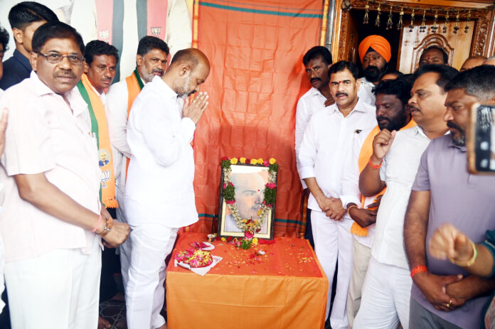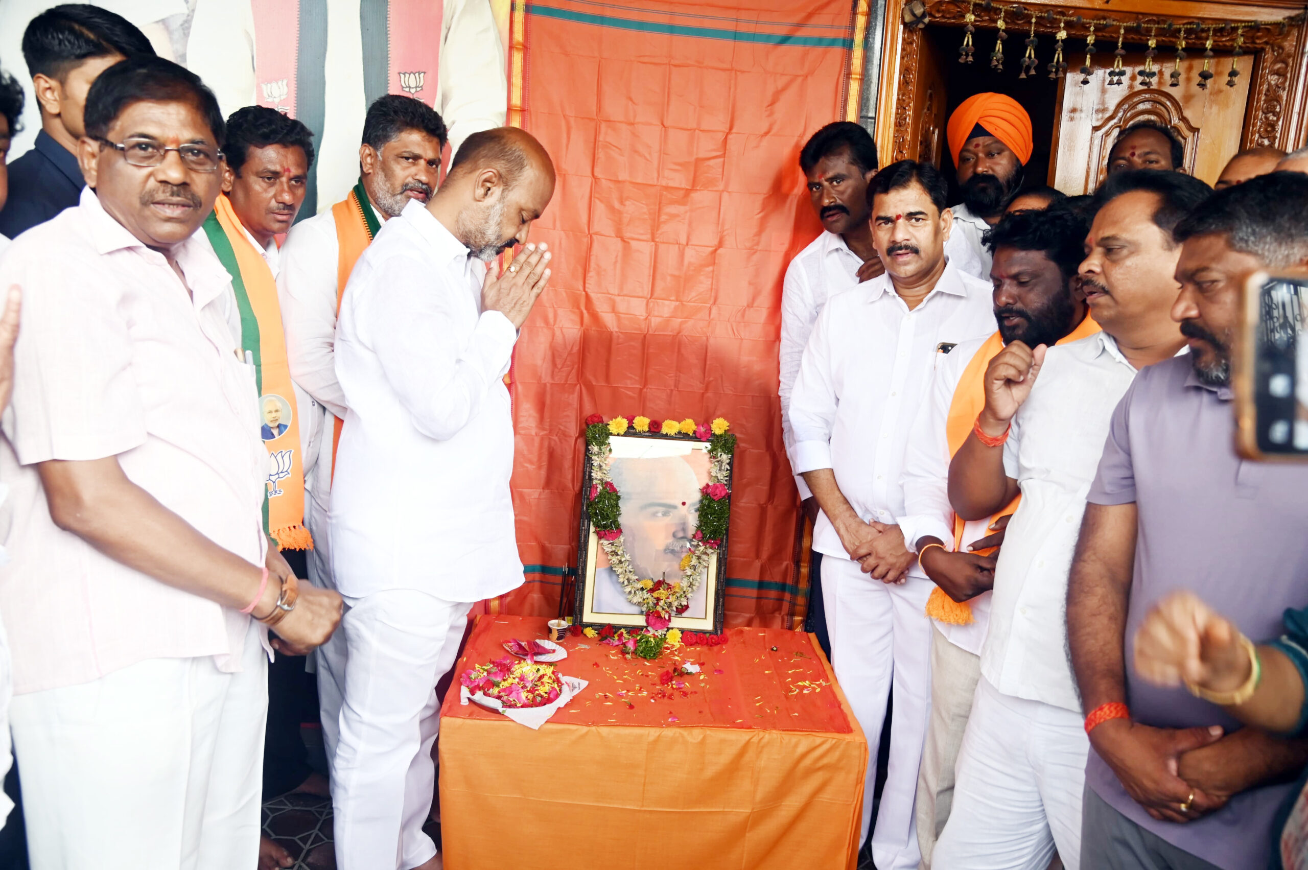 నేటి సాక్షి, కరీంనగర్: భారతదేశ అసలు సిసలైన హీరో శ్యామాప్రసాద్ ముఖర్జీ అని కేంద్ర హోంశాఖ సహాయ మంత్రి బండి సంజయ్ కుమార్ కొనియాడారు. పాకిస్తాన్, బంగ్లాదేశ్ యుద్ధాల సమయంలో జన సంఘ్ కార్యకర్తలకు తుపాకీలిచ్చి సైనికులతోపాటు భారతదేశం పక్షాన యుద్ధానికి పంపి, పార్టీకంటే దేశం ఫస్ట్ అని చాటి చెప్పిన గొప్ప వ్యక్తి శ్యామాప్రసాద్ ముఖర్జీ అని పేర్కొన్నారు. దేశం కోసం ఆత్మ బలిదానం చేసుకున్న ఏకైక జాతీయ పార్టీ అధ్యక్షుడు, పార్లమెంట్లో ఏకైక ప్రతిపక్ష నేత కూడా ఆయనేనని తెలిపారు. శ్యామాప్రసాద్ ముఖర్జీ వర్ధంతి సందర్భంగా ఆదివారం కరీంనగర్ జిల్లా పార్టీ కార్యాలయంలో ఆయన చిత్రపటానికి పూలమాల వేసి ఘన నివాళి అర్పించారు. అంతకుముందు మహాశక్తి అమ్మవారి ఆలయంలో సంజయ్ తన మాతృమూర్తి శకుంతల సమక్షంలో మొక్క నాటించారు. అనంతరం శ్యామాప్రసాద్ ముఖర్జీ దేశానికి చేసిన సేవలను, త్యాగాన్ని స్మరిస్తూ ప్రకటన విడుదల చేశారు. ఈ సందర్భంగా బండి మాట్లాడారు. కశ్మీర్ వెళ్లడానికి కాంగ్రెస్ ప్రభుత్వం పర్మిట్ కార్డు తప్పనిసరి చేస్తే నా దేశం వెళ్లడానికి పర్మిట్ కార్డు ఎందుకని ప్రశ్నిస్తూ ‘ఏక్ దేశ్ మే దో విధాన్.. దో ప్రధాన్.. దో నిషాన్.. నహీ నహీ చలేగా… నహీ చలేగా’ అంటూ 370 ఆర్టికల్ రద్దు కోసం పోరాడిన మహనీయుడు శ్యామాప్రసాద్ ముఖర్జీ అని అన్నారు. ఆనాడు పర్మిట్ అవసరం లేదని పేర్కొంటూ కశ్మీర్ బయలుదేరిన శ్యామాప్రసాద్ ముఖర్జీని నాటి ప్రభుత్వం అక్రమంగా అరెస్ట్ చేసి కనీస సౌకర్యాలు లేని జైల్లో నిర్బంధానికి గురి చేసిందని, ఆనాడు అటువైపుగా వెళుతున్న నాటి ప్రధాని జవహార్ లాల్ నెహ్రూకు ముఖర్జీని పరామర్శించాలనే సోయి లేకుండా వెళ్లిపోయిందని విమర్శించారు. ఆ నిర్బంధంలోనే అనుమానాస్పద స్థితిలో ముఖర్జీ మరణిస్తే, కనీసం విచారణ జరపని అమానవీయ ప్రభుత్వం కాంగ్రెస్ది అని మండిపడ్డారు. ఆయన చనిపోయాక కశ్మీర్కు వెళ్లడానికి వీసా తప్పనిసరి అనే విధానాన్ని నెహ్రూ ప్రభుత్వం రద్దు చేసిందని, ఇది బీజేపీ సాధించిన తొలి విజయం అని పేర్కొన్నారు.