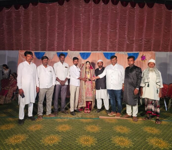 నేటి సాక్షి వికారాబాద్/ మార్పల్లి:ఆడబిడ్డ పెండ్లికి అండగా ఎన్నికల్లో ఇచ్చిన హామీ అమలు చేస్తున్న బీ ఆర్ ఎస్ పార్టీ మర్పల్లి మండలం అధ్యక్షులు రావులపల్లి సర్పంచ్ శ్రీకాంత్ రెడ్డిస్థానిక సంస్థల ఎన్నికల్లో భాగంగా మర్పల్లి మండల పరిధిలోని రావులపల్లి గ్రామ సర్పంచిగా గెలుపొందిన వెంటనే గ్రామంలోని ప్రతి ఆడబిడ్డ పెండ్లికి 16000/- రూపాయలు పెండ్లి కానుకగా అందిస్తానని హామీ ఇవ్వడం జరిగింది.ఇచ్చిన హామీ ప్రకారం శుక్రవారం రావులపల్లి గ్రామానికి చెందిన బీ ఆర్ ఎస్ పార్టీ నాయకులు కలీం కూతురు వివాహం జరుగగా ఇట్టి వివాహానికి హాజరై వధూవరులను ఆశీర్వదించి 16000/- వేల రూపాయలు పెండ్లి కానుకగా అందించిన మర్పల్లి మండలం బీ ఆర్ ఎస్ పార్టీ అధ్యక్షులు రావులపల్లి సర్పంచ్ శ్రీకాంత్ రెడ్డి బీ ఆర్ ఎస్ నాయకులు తదితరులు పాల్గొన్నారు.