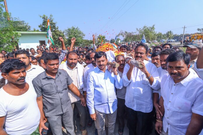 నేటి సాక్షి పాలేరు ,డిసెంబర్ 20 : రాజకీయం అంటే కేవలం పదవులు… అధికార దర్పం మాత్రమే కాదు.. అంతకు మించిన ఆత్మీయ అనుబంధమని తెలంగాణ రెవెన్యూ, గృహ నిర్మాణం, సమాచార శాఖల మంత్రి పొంగులేటి శ్రీనివాసరెడ్డి నిరూపించారు. పార్టీ పటిష్టత కోసం కృషి చేస్తూ… తన వెన్నంటి నడిచిన సీనియర్ కాంగ్రెస్ నాయకుడు యడవల్లి రామిరెడ్డి అకాల మరణం ఆయన్ని తీవ్రంగా కలచివేసింది. శనివారం పాలేరులో జరిగిన రామిరెడ్డి అంత్యక్రియల్లో మంత్రి పాల్గొన్న తీరు అక్కడున్న వేలాది మంది కళ్లను చెమర్చింది.*అధికార హోదా మరచి..*అంత్యక్రియల సందర్భంగా మంత్రి పొంగులేటి తన ప్రోటోకాల్ను పక్కన పెట్టారు. తన ప్రియతమ అనుచరుడికి కడసారి వీడ్కోలు పలుకుతూ మంత్రి స్వయంగా పాడే మోశారు. సాధారణ కార్యకర్తలు, ఇతర నాయకులతో కలిసి శ్మశాన వాటిక వరకు నడిచి తనపై ఉన్న అపారమైన గౌరవాన్ని, అభిమానాన్ని చాటుకున్నారు. ఒక రాష్ట్ర మంత్రి హోదాలో ఉండి కూడా, తన అనుచరుడి కోసం పాడే పట్టి.. కన్నీటి వీడ్కోలు పలకడాన్ని చూసి పాలేరు ప్రజలు భావోద్వేగానికి లోనయ్యారు.- *పాలేరు శోకసంద్రం…*సీనియర్ నాయకుడు రామిరెడ్డి మృతితో పాలేరు గ్రామం మౌన రోదనతో నిండిపోయింది. వేలాదిగా తరలివచ్చిన జనవాహిని మధ్య అంత్యక్రియలు ముగిశాయి. “పార్టీ ఒక నిబద్ధత గల సీనియర్ నాయకుడిని కోల్పోయింది. నా రాజకీయ ప్రయాణంలో రామిరెడ్డి పాత్ర మరువలేనిది” అని మంత్రి ఆవేదన వ్యక్తం చేస్తూ ఆయన కుటుంబానికి అండగా ఉంటానని భరోసా ఇచ్చారు.