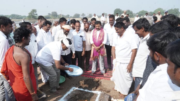 నేటి సాక్షి, తిమ్మాపూర్:తిమ్మాపూర్ మండలం నుస్తులాపూర్ గ్రామంలో దుర్గమ్మ గుడి నిర్మాణ పనులకు మానకొండూర్ ఎమ్మెల్యే డా. కవ్వంపల్లి సత్యనారాయణ స్థానిక సర్పంచ్ తుమ్మనపల్లి సంధ్య శ్రీనివాసరావుతో కలిసి బుధవారం భూమిపూజ చేశారు. వార్డు మెంబర్ ఎస్ కొండల్ రావు, మండల కాంగ్రెస్ అధ్యక్షుడు బండారి రమేశ్, మాజీ అధ్యక్షుడు మోరపల్లి రమణారెడ్డి, మాజీ ఎంపీపీ శ్రీగిరి రంగారావు, పార్టీ నాయకులు కొత్త తిరుపతిరెడ్డి, మామిడి అనిల్ కుమార్ తదితరులు పాల్గొన్నారు.
