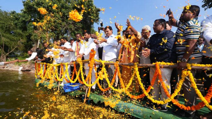నేటి సాక్షి పాలేరు , నవంబర్ 13 :కూసుమంచి : పేదల పక్షపాతిగా ఇందిరమ్మ ప్రభుత్వం పని చేస్తోందని తెలంగాణ రెవెన్యూ, గృహనిర్మాణ, సమాచార శాఖల మంత్రి పొంగులేటి శ్రీనివాస రెడ్డి అన్నారు. గురువారం కూసుమంచి మండలంలోని పాలేరు గ్రామ రిజర్వాయర్లో చేప పిల్లలను మంత్రి విడుదల చేశారు. ఈ సందర్భంగా మంత్రి మాట్లాడుతూ… ప్రజల ఆశీర్వాదంతో తెలంగాణలో ఇందిరమ్మ ప్రభుత్వం ఏర్పడి 22 నెలలుగా పేదల సంక్షేమమే ప్రధాన లక్ష్యంగా పాలన సాగిస్తోందని చెప్పారు. పేదల జీవనోపాధి కష్టాలపై దృష్టిపెట్టి ప్రభుత్వం అనేక పథకాలను అమలు చేస్తోందని పేర్కొన్నారు. మత్స్యకార సోదరుల అభ్యర్థన మేరకు రాష్ట్రవ్యాప్తంగా ఉన్న 101 మీడియం, మేజర్ రిజర్వాయర్లలో పెద్దసైజు రొయ్య పిల్లలను రాబోయే 15 రోజుల్లో విడుదల చేయనున్నట్లు తెలిపారు. ఉమ్మడి ఖమ్మం జిల్లాలో అతి పెద్ద ప్రాజెక్టుగా ఉన్న పాలేరు రిజర్వాయర్లో ఇప్పటికే రెండు సార్లు చేప పిల్లల విడుదల చేసినట్లు గుర్తుచేశారు. ఆర్భాటాలకు కాకుండా, ప్రతి రూపాయి ప్రజల సంక్షేమానికే వినియోగించే విధంగా ఇందిరమ్మ ప్రభుత్వం పని చేస్తోందని మంత్రి స్పష్టం చేశారు. అనంతరం కూసుమంచి క్యాంపు కార్యాలయంలో జరిగిన కార్యక్రమంలో 90 మంది లబ్ధిదారులకు రూ.37 లక్షల 97 వేల 500 విలువైన సీఎంఆర్ఎఫ్ చెక్కులను మంత్రి అందజేశారు. ఈ కార్యక్రమంలో అదనపు కలెక్టర్ పి. శ్రీనివాస్ రెడ్డి, రాష్ట్ర మత్స్య సహకార సంఘాల సమాఖ్య చైర్మన్ మెట్టు సాయి కుమార్, ఖమ్మం ఎగ్జిక్యూటివ్ ఇంజనీర్, తహసిల్దార్ రవికుమార్, ఎంపిడీఓ, ప్రజా ప్రతినిధులు, మత్స్యకార సంఘాల నాయకులు పాల్గొన్నారు.