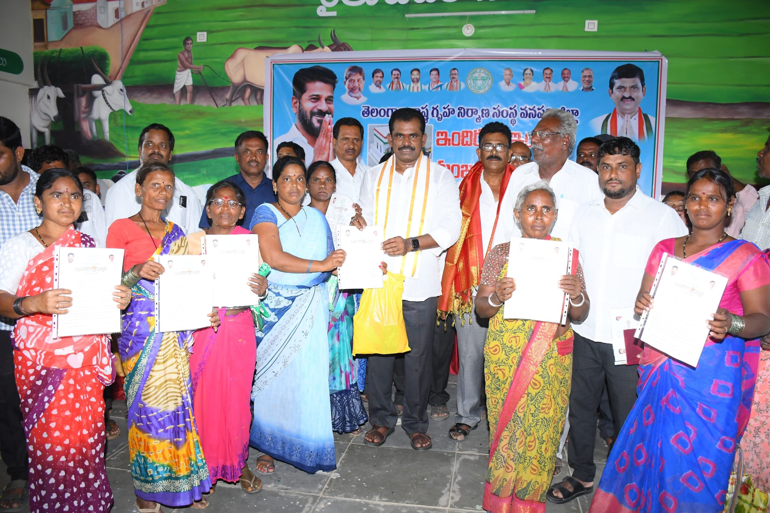 ఒకేరోజు 1913 ఇందిరమ్మ ఇళ్ల పట్టాల పంపిణీ…!!!ఇల్లు లేని నిరుపేదలందరికీ ఇందిరమ్మ ఇల్లు మంజూరు చేయడమే కాంగ్రెస్ లక్ష్యం…!!!గత పదివేల పాలనలో దగాపడ్డ నిరుపేదలు…!!!ఎమ్మెల్యే తూడి మేఘారెడ్డి…!!!నేటి సాక్షి ప్రతినిధి వనపర్తి జిల్లా :ఇందిరమ్మ రాజ్యం కాంగ్రెస్ ప్రభుత్వ పాలనలో తెలంగాణలోని నిరుపేద కుటుంబాలకు నేడు సొంత ఇంటి కల నెరవేరిందని ఇల్లు లేని ప్రతి ఒక్కరికి ఇందిరమ్మ ఇల్లు మంజూరు చేసి వారికి వెన్నుదన్నుగా ప్రభుత్వం నిలుస్తుందని వనపర్తి శాసన సభ్యులు తూడి మేఘారెడ్డి పేర్కొన్నారు.బుధవారం వనపర్తి నియోజకవర్గ పరిధిలోని అడ్డాకుల మండలంలోని కన్మనూర్, బలీద్ పల్లి, చిన్న మునగాల్చేడ్, పెద్ద మునగాల్చేడ్, గ్రామాలతో పాటు పెద్దమందడి మండల పరిధిలోని వెల్టూర్, చిలక టోన్ పల్లి గ్రామ ఇందిరమ్మ ఇళ్ల లబ్ధిదారులకు, వనపర్తి మునిసిపాలిటీ, వనపర్తి మండలం, గోపాల్పేట మండలం, రేవల్లి మండలం, ఏదుల మండలంలోని ఇందిరమ్మ ఇళ్ల లబ్ధిదారులకు వనపర్తి శాసన సభ్యులు తూడి మేఘారెడ్డి ఇందిరమ్మ ఇళ్ల పట్టాలను పంపిణీ చేశారు.ఈ సందర్భంగా ఆయా మండలాలలో ఏర్పాటుచేసిన సమావేశాల్లో పాల్గొని ఎమ్మెల్యే మాట్లాడారు.గత బిఆర్ఎస్ ప్రభుత్వం పదేళ్ల పాలనలో ఇల్లు లేని నిరుపేదలు దగాపడ్డారని డబల్ బెడ్రూంలు కట్టిస్తామని నీటిమీద రాతలాంటి మాయ మాటలు చెప్పి మోసపుచ్చారని ఎమ్మెల్యే విమర్శించారు.పదేళ్ల పాలనలో సంవత్సరానికి గ్రామానికి ఒక 5 ఇల్లు ఇచ్చుకుంటూ పోయిన నేటికీ గ్రామాలలో ఇంత మంది ఇల్లు లేని లబ్ధిదారులు ఉండేవారు కాదని ఆయన పేర్కొన్నారు.వనపర్తి నియోజకవర్గానికి 3500 ఇందిరమ్మ ఇండ్లు మంజూరయ్యాయని ఇందుకు సంబంధించి కాంగ్రెస్ ప్రభుత్వం రూ. 173 కోట్ల రూపాయలను ఖర్చు చేస్తుందని ఎమ్మెల్యే తెలిపారు.బుధవారం ఒకేరోజు 1913 ఇండ్లకు గాను దాదాపు 96 కోట్ల 65 లక్షల రూపాయలు పిలువగల ఇందిరమ్మ ప్రొసీడింగ్స్ ను లబ్ధిదారులకు అందజేశామని ఎమ్మెల్యే చెప్పారు.అడ్డాకల్ మండలం నాలుగు గ్రామాలు, పెద్దమందడి,మండలం రెండు గ్రామాలకు,సంబంధించి 99 మంది,వనపర్తి మున్సిపాలిటీకి సంబంధించి 575 మంది,వనపర్తి మండలానికి సంబంధించి 453 మంది,గోపాల్పేట మండలానికి సంబంధించి 419 మందికి,రేవల్లి మండలానికి సంబంధించి 205 మందికి,ఏదుల మండలానికి సంబంధించి 162 మందికి ఇందిరమ్మ ఇళ్ల పట్టాల పంపిణీ చేపట్టినట్లు ఆయన తెలిపారు.ఇందిరమ్మ రాజ్యంలో ప్రతి ఒక్క నిరుపేదకు లబ్ధి చేకూరుతుందని ఎమ్మెల్యే పేర్కొన్నారు.రాజీవ్ ఆరోగ్యశ్రీ 5 లక్షల నుంచి 10 లక్షల వరకు పెంచామని,మహిళలకు ఉచిత ఆర్టీసీ బస్సు సౌకర్యం కల్పించామని,200 యూనిట్ల ఉచిత విద్యుత్ సరఫరా చేస్తున్నామని,రూ 500 కే గ్యాస్ సిలిండర్ల పంపిణీ చేస్తున్నామని,రైతులకు రెండు లక్షల రుణమాఫీ చేశామని,సన్న వడ్లు పండించ