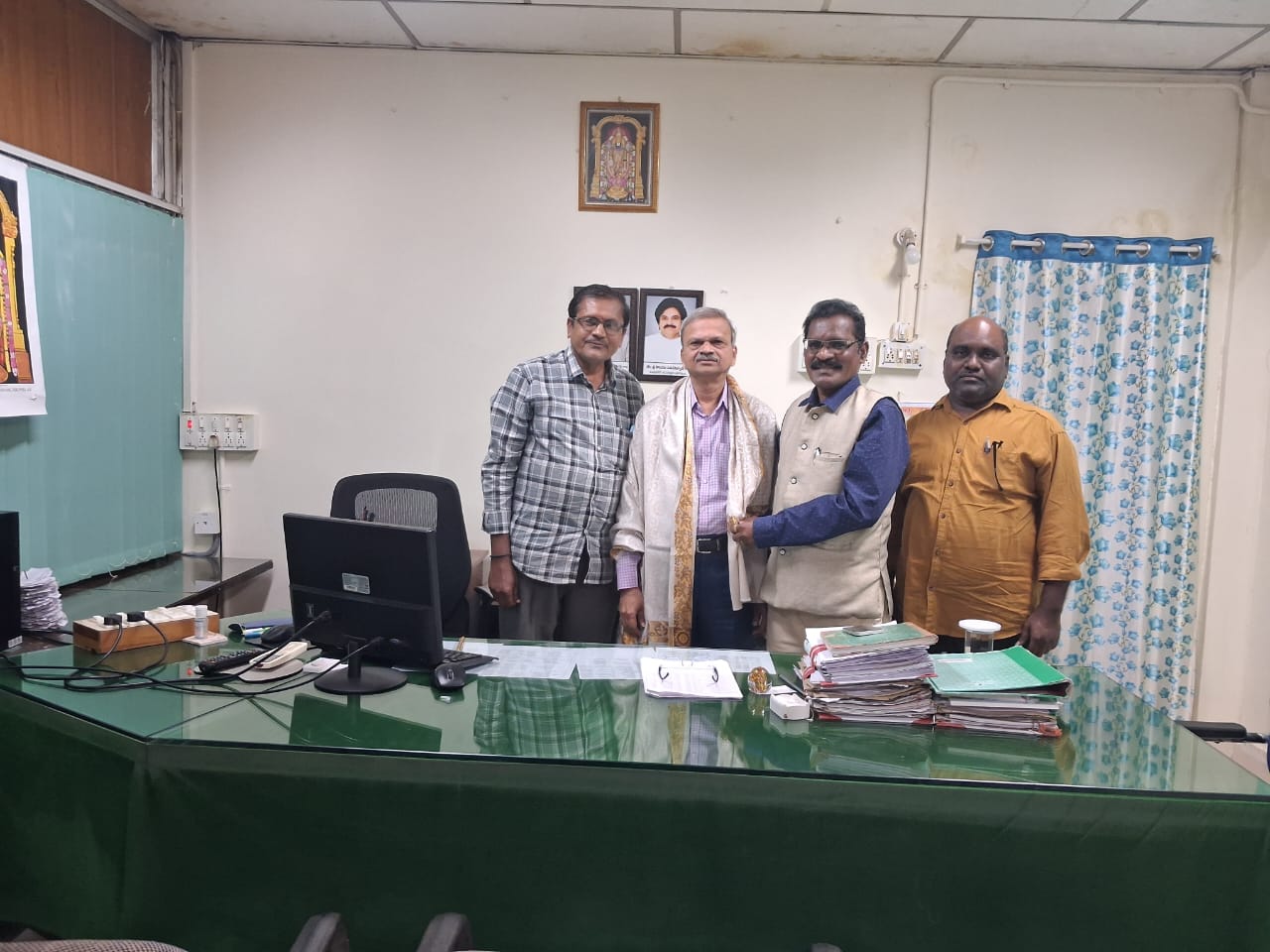 నేటి సాక్షి తిరుపతి ఆర్టీసీ కడప ఎక్జిక్యూటివ్ డైరెక్టర్ పైడి చంద్రశేఖర్ ని ఆర్టీసీ బహుజన ఎంప్లాయీస్ వెల్ఫేర్ అసోసియేషన్ రాష్ట్ర అధ్యక్షులు అంబేద్కర్ స్టార్ కృష్ణ కడపలోని ఈ.డి.కార్యాలయంలో మర్యాద పూర్వకంగా కలసి శాలువాతో సత్కరించి సంక్రాంతి శుభాకాంక్షలు తెలియజేశారు. ఈ సందర్భంగా స్టార్ కృష్ణ మాట్లాడుతూ పైడి చంద్రశేఖర్ తిరుపతిలో డిప్యూటీ సిటిఎం గా పనిచేసేటప్పుడు ఎస్సీ ఎస్టీ, బహుజన ఉద్యోగుల సమస్యల పరిష్కారం పట్ల ప్రత్యేక శ్రద్ధ కనబరిచేవారని కొనియాడారు. ఈ కార్యక్రమంలో అసోసియేషన్ నాయకులు కె. అంజప్పా, ఈ.వాసు తదితరులు పాల్గొని ఈ. డి.కి నూతన సంవత్సర శుభాకాంక్షలు తెలియజేశారు.