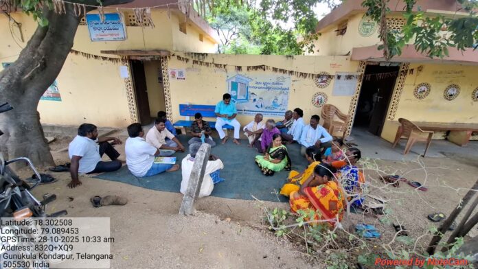 నేటి సాక్షి,గన్నేరువరం, (బుర్ర అంజయ్య గౌడ్):* గన్నేరువరం మండలం,గునుకుల కొండాపూర్ గ్రామంలో మహాత్మా గాంధీ జాతీయ గ్రామీణ ఉపాధి హామీ పథకంలో 2026-27 ఆర్థిక సంవత్సరంకుగాను ఉపాధి హామీలో జాబ్ కార్డు కలిగిన ప్రతి కుటుంబానికి 100 రోజులులబ్ది చేకూరేలా పని కల్పించే విధంగా నూతన పనులను ఎంపిక చేసి అంచనాలను తయారు చేయడం జరిగింది. ఉపాధి హామీలో చెప్పట్టే పనులు వ్యవసాయ పొలాలకు మట్టి రోడ్డు నిర్మాణాలు, అర్హత కలిగిన రైతులకు పశువుల పాకలు, గొర్రెల పాకలు, మొక్కల పెంపకం, ఉద్యానవన మొక్కల పెంపకం, అర్హత కలిగిన కుటుంబానికి వ్యక్తిగత ఇంకుడు గుంతల నిర్మాణాలు, నాడెప్ కంపోస్ట్ పిట్ లు నిర్మించుకోవచ్చు అని గునుకుల కొండాపూర్ పంచాయతీ కార్యదర్శి పి. రాజేష్ గ్రామసభ వేదికగా తెలిపారు. ఈ కార్యక్రమంలో బెజ్జంకి వ్యవసాయ డైరెక్టర్ న్యాలపట్ల కనకయ్య గౌడ్, ఫీల్డ్ అసిస్టెంట్ హన్మాండ్ల యాదగిరి,ANM లు పద్మ, మంగ,కారోబార్ ముల్కల అంజయ్య, గ్రామ పెద్ద మనుషులు హనుమండ్ల నరసయ్య, న్యాలపట్ల రాజయ్య గౌడ్, రైతులు మరియు ఉపాధి హామీ కూలీలు పాల్గొన్నారు.