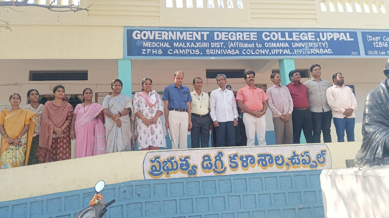 నేటి సాక్షి ఉప్పల్ నవంబర్ 7భారతదేశ స్వాతంత్య్ర సమరంలో జాతిని జాగృతం చేసిన ‘వందేమాతరం’ గీతానికి నేటితో 150 ఏళ్లు నిండాయి. ఈ వేడుక సందర్భంగా ఉప్పల్ ప్రభుత్వ డిగ్రీ కళాశాలలో ఎన్ఎస్ఎస్ వాలంటీర్లు, విద్యార్థులు, అధ్యాపకులు సామూహికంగా వందేమాతర గీతాన్ని ఆలపించారు. జాతీయోద్యమ మహనీయులకు ఘన నివాళులర్పించారు. వందేమాతరం. ఈ సందర్భంగా ప్రిన్సిపాల్ డా.కె.విజయ్ కుమార్ మాట్లాడుతూ జాతీయ గీతం స్ఫూర్తిగా, సమైక్యతా భావంతో దేశ అభివృద్ధికి పునరంకితమవుదామని పిలుపునిచ్చారు. ఈ కార్యక్రమంలో వైస్ ప్రిన్సిపాల్ డా.ఎ.రవి ప్రసాద్, ఎన్ఎస్ఎస్ పిఓ విశ్వనాథ్ కుమార్, డా.ఎన్ రాజశ్రీ, డా.జి.తిరుపతయ్య, కె.గీత, డా.ఎస్ యమునారాణి, పి.విజయ్ కుమార్, డా.వి.శ్రీనివాసరావు, డా.ఆర్.చంద్రసాగర్, డా.పి.వెంకటేశ్వర్లు, స్రవంతి, అనూష, శ్రీలత తదితరులు పాల్గొన్నారు.