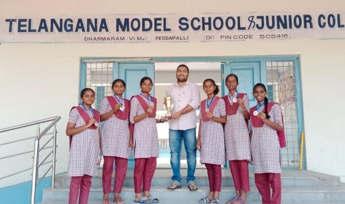 నేటి సాక్షి, ధర్మారం (అక్టోబర్ 17) : ధర్మారం మండల కేంద్రంలోని తెలంగాణ ఆదర్శ పాఠశాల లో ఇంటర్ ద్వితీయ సంవత్సరం చదువుతున్న విద్యార్థులు ఉమ్మడి కరీంనగర్ జిల్లా వాలీబాల్ అండర్ 19 జిల్లా స్థాయి పోటీలలో మంచి ప్రతిభను కనబరిచి ద్వితీయ స్థానం సాధించడం జరిగింది అని ప్రిన్సిపాల్ ఈరవేణి రాజ్ కుమార్ తెలిపారు. ఈనెల 14న కరీంనగర్ లోని శ్రీ చైతన్య డిఫెన్స్ అకాడమీలో జరిగిన ఉమ్మడి కరీంనగర్ జిల్లా స్థాయి పోటీలలో ధర్మారం మండలం ఆదర్శ పాఠశాల విద్యార్థులు ఉమ్మడి జిల్లా స్థాయిలో ద్వితీయ స్థానం సాధించడం పట్ల ప్రిన్సిపాల్ ఈరవేణి రాజ్ కుమార్ హర్షం వ్యక్తం చేశారు. ఇందులో పాఠశాల నుండి ఇద్దరు విద్యార్థులు రాష్ట్రస్థాయి పోటీలకు జి.పూజ రాష్ట్ర స్థాయి పోటీలకు ఎంపికయ్యారని తెలిపారు వీరిని ప్రిన్సిపాల్ ఈరవేణి రాజ్ కుమార్ వ్యాయామ ఉపాధ్యాయులు బైకనీ కొమురయ్య మేకల సంజీవరావు విద్యార్థులను అభినందించడం జరిగింది.