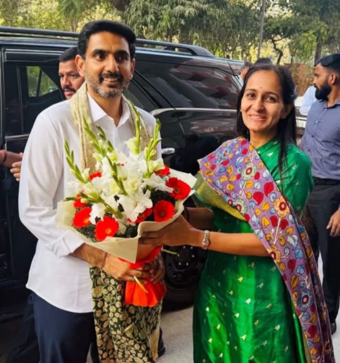 నేటి సాక్షి 15 నంద్యాల :–న్యూ ఢిల్లీలో సోమవారం మధ్యాహ్నం రాష్ట్ర ఐటీ శాఖ, విద్యా శాఖ మంత్రి నారా లోకేష్ టీడీపీ పార్లమెంట్ సభ్యులతో నంద్యాల పార్లమెంట్ సభ్యురాలు, లోక్ సభ టీడీపీ డిప్యూటీ ఫ్లోర్ లీడర్ డాక్టర్ బైరెడ్డి శబరి ఇంటిలో లంచ్ మీటింగ్ నిర్వహించారు. ఎంపీ డాక్టర్ బైరెడ్డి శబరి ఆహ్వానం మేరకు ఢిల్లీలోని ఆమె ఇంటికి రాష్ట్ర మంత్రి నారా లోకేష్, కేంద్ర మంత్రులు కింజరాపు రామ్మోహన్ నాయుడు, డాక్టర్ పెమ్మసాని చంద్రశేఖర్ తో పాటు టీడీపీ పార్లమెంటు సభ్యులు ఎంపీ డాక్టర్ బైరెడ్డి శబరి ఇంటికి రాగానే ఎంపీ డాక్టర్ బైరెడ్డి శబరి మంత్రి నారా లోకేష్ తో పాటు తోటి పార్లమెంట్ సభ్యులకు సాధర స్వాగతం పలికారు. ఢిల్లీలోని తన ఇంటిలో రాష్ట్ర మంత్రి నారా లోకేష్ కు, నాతోటీ ఎంపీ లకు భోజనానికి ఆతిథ్యం ఇవ్వడం ఆనందంగా ఉందని ఎంపీ డాక్టర్ బైరెడ్డి శబరి చెప్పారు.