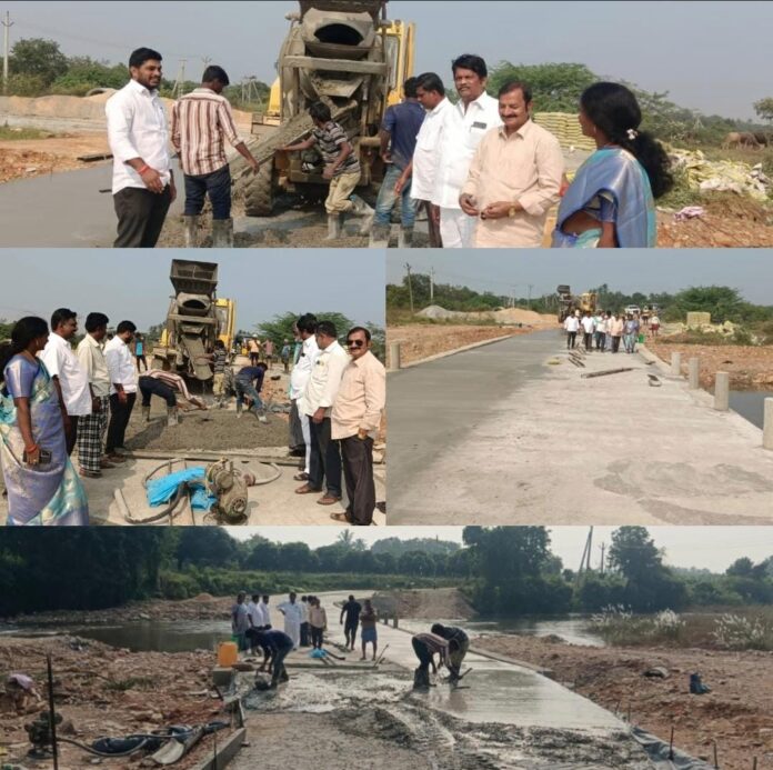 నేటి సాక్షి అన్నమయ్య జిల్లా, శర్మ, డిసెంబర్ 12 ~అన్నమయ్య జిల్లా :-: రైల్వే కోడూరు మండల కేంద్రమైన అనంతరాజుపేట – రామయ్య పాలెం గ్రామాలకు గాను 30 లక్షల రూపాయల వ్యయంతో కల్వర్టు నిర్మాణం తో పాటు సీసీ రోడ్డు కొరకు రాజంపేట ఎంపీ పెద్దిరెడ్డి వెంకట మిథున్ రెడ్డి, మాజీ నియోజకవర్గ శాసనసభ్యులు, రాష్ట్ర అధికార ప్రతినిధి కొరుముట్ల శ్రీనివాసులు సహకారం అందించారు. దీంతో గ్రామాలకు రోడ్డు పనులు ప్రారంభమయ్యాయి. రోడ్డు నిర్మాణం పనులను వైయస్ఆర్ కాంగ్రెస్ పార్టీ సీనియర్ నాయకుడు పంజం వేణుగోపాల్ రెడ్డి, జడ్పీటీసీ పాలెం కోట రత్నమ్మ శుక్రవారం పర్యవేక్షించారు. ఈ సందర్భంగా గ్రామస్తులు హర్షం వ్యక్తం చేస్తూ ఎన్నో సంవత్సరాల కల నేటితో నెరవేరిందని రాజంపేట ఎంపీ మిథున్ రెడ్డి, నియోజకవర్గ మాజీ శాసనసభ్యులు కొరుముట్ల శ్రీనివాసులకు ప్రత్యేక కృతజ్ఞతలు తెలుపుతున్నామని వీళ్ళ సహకారంతోనే ఇరు గ్రామాలకు వెళ్లేందుకు కల్వర్టు మరియు సీసీ రోడ్డు సౌకర్యం సుగమమైందని గ్రామస్తులు పేర్కొన్నారు. ఈ కార్యక్రమంలో స్థానిక సర్పంచ్ సుబ్రహ్మణ్యం, ఎంపీటీసీలు పం దేటి జనార్దన్ రాజు, బండారు మల్లికార్జున, మిట్టమీద పల్లె వార్డు మెంబర్ మాధవ, వైసీపీ శ్రేణులు, స్థానిక గ్రామ ప్రజలు పాల్గొన్నారు..~~~~~~~~~~~~~~~~