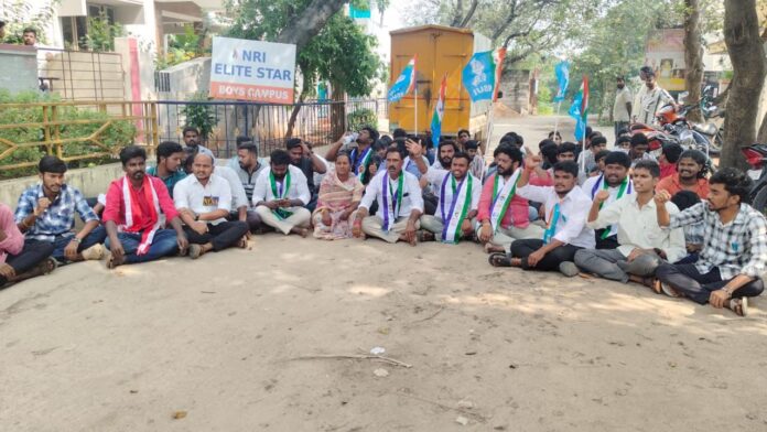 నేటి సాక్షి తిరుపతి (బాదూరు బాల) చదువుల ఒత్తిడి భరించలేకనే మొదటి సంవత్సరం చదువుతున్న కుప్పం ప్రాంతానికి చెందిన జశ్విన్ అనే విద్యార్థి ఆత్మహత్య యత్నంకు పాల్పడ్డాడు. పదో తారీఖున ఉదయం 8 గంటల ప్రాంతంలో తిరుపతి నగరం నడిబొడ్డున ఉన్నటువంటి ఎన్నారై కళాశాల యందు విద్యార్థి మొదటి సంవత్సరం బైపిసి చదువుతున్నాడు .ఈ విద్యార్థిపై అక్కడున్నటువంటి కళాశాల అధ్యాపక బృందంలో ఒక వ్యక్తి కులం పేరుతో దూషించడం నువ్వు చనిపోతే ఎవరికి నష్టం లేదనడం నువ్వు చనిపోతే ఒకరోజు కళాశాలకు సెలవు వస్తుందని చెప్పడం ఆ విధంగా మానసికంగా వేధించడం చదువుల ఒత్తిడి తీసుకొని రావడం ఈ ప్రయత్నంలో భాగంగా ఆ విద్యార్థి ఆత్మహత్య ప్రయత్నం చేయడం జరిగింది. కళాశాల యాజమాన్యం విద్యార్థి తల్లిదండ్రులకు తప్పుడు సమాచారం ఇచ్చి వారి నుంచి డబ్బులు పంపమని ఫోన్ ద్వారా చెప్పడం జరిగింది తల్లిదండ్రులు అక్కడి నుంచి వెంటనే తిరుపతికి చేరుకొని ఆసుపత్రికి వెళ్లడం జరిగింది అక్కడికి పోయేంతవరకు తల్లిదండ్రులకు తమ కుమారుడు ఆత్మహత్యాయత్నం చేశాడని విషయం కూడా తెలియదు .ఇప్పటికైనా కళాశాలలు విద్యార్థులపై ఒత్తిడి తీసుకొని రావడం తగ్గించాలని విద్యార్థి సంఘాలు కళాశాల ఎదుట ధర్నా నిర్వహించడం జరిగింది .విద్యార్థికి న్యాయం జరిగేంత వరకు పోరాటం కొనసాగిస్తామని ఇలాంటి సంఘటనలు మళ్ళీ జరగకూడదని విద్యార్థి సంఘ నేతలు కళాశాల ఎదుటనే బయటాయించడం జరిగింది. విద్యార్థి సంఘాలు కళాశాల ముందు రెండు గంటలు ధర్నా నిర్వహించిన కళాశాల యజమాన్యం నుంచి స్పందన కరువైంది ఆ తరువాత అకాడమిక్ సీఈవో అక్కడికి చేరుకొని విద్యార్థికి మెరుగైనటువంటి వైద్యం అందిస్తామని ఇలాంటివి మళ్లీ జరగకుండా జాగ్రత్త పడతామని విద్యార్థికి రెండు సంవత్సరాల ఫీజు కూడా భరిస్తామని తల్లిదండ్రులకు భరోసా ఇచ్చేంతవరకు అక్కడే విద్యార్థి సంఘం నేతలు అక్కడే ఉన్నారు .ఇప్పటికైనా కూటమి ప్రభుత్వ పెద్దలు కార్పొరేట్ కళాశాలలపై దృష్టి సాధించాలని ఇలాంటి సంఘటనకు సంబంధించినటువంటి కళాశాల యాజమాన్యం పై క్రిమినల్ కేసులు నమోదు చేయాలని విద్యార్థి సంఘ నేతలు డిమాండ్ చేశారు .ఇప్పటికైనా తల్లిదండ్రులు తమ పిల్లలను చేర్చేటువంటి కళాశాలలు సందర్శించి అక్కడున్నటువంటి వసతులను పరిశీలించి తమ బిడ్డల భవిష్యత్తును కాపాడుకోవాలని విద్యార్థి సంఘం నేతలు తల్లిదండ్రులను కోరారు .ఈ కార్యక్రమంలో ఐక్య విద్యార్థి సంఘం నేతలు డాక్టర్ బి ఓబుల్ రెడ్డి, స్వరూప్ కుమార్ ,శివ బాలాజీ, ప్రవీణ్, చెంగల్ రెడ్డి,ప్రేమ్ కుమార్ ,సుందర రాజు ,తేజ ,యుగంధర్ ,సుధాకర్ ,యశ్వంత్ రెడ్డి ,గూడూరు రఫీ ,ప్రదీప్ ,పునీత్ ,వినోద్, నితిన్, నీరజ్ రెడ్డి ,వెంకట్ నాయక్ ,వరుణ్ ,కరుణాకర్ ,ముని ,తదితరులు పాల్గొన్నారు.