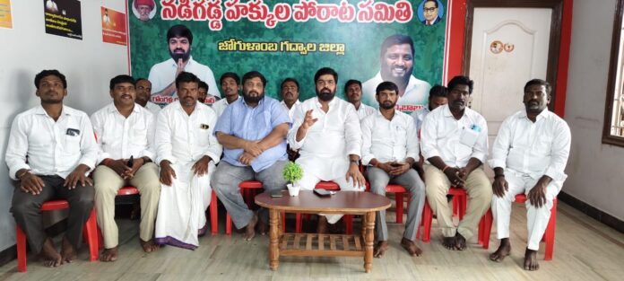 ఈ కార్యక్రమంలో నడిగడ్డ హక్కుల పోరాట సమితి జిల్లా కన్వీనర్ బుచ్చిబాబు, జిల్లా నాయకులు రంగస్వామి,వెంకట్రాములు, మల్ధకల్ మండల అధ్యక్షుడు విష్ణు, నాయకులు తిమ్మప్ప,చిన్న రాముడు, వెంకటేష్, ఆశన్న,గోపాల్, నాగేష్ తదితరులు పాల్గొన్నారు.