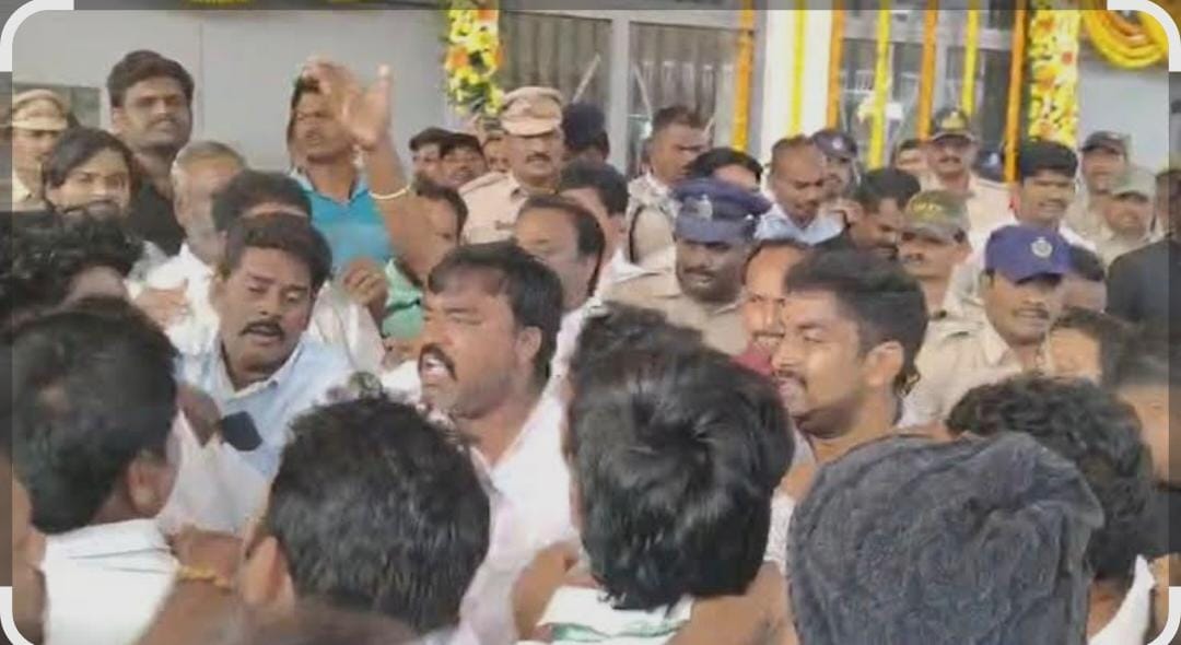 నేటి సాక్షి, అన్నమయ్య జిల్లా, శర్మ, డిసెంబర్ 19~అన్నమయ్య జిల్లా -:- రాజమండ్రిలోని అదికవి నన్నయ యూనివర్సిటీలో శుక్రవారం మంత్రి నారా లోకేష్ పర్యటన సందర్భంగా స్థానిక జనసేన ఎమ్మెల్యే బత్తుల బలరామకృష్ణను అవమానించారంటూ జన సైనికులు ఆందోళనకు దిగడంతో ఉద్రిక్తత నెలకొంది. యూనివర్సిటీ గేట్ బయట కట్టిన తమ ఫ్లెక్సీలు తొలగింపుతో జనసైనికులు ఆగ్రహం కట్టలు తెంచుకుంది. పర్యటనలో పాల్గొనేందుకు వచ్చిన జనసేన మహిళా నేత, ఎమ్మెల్యే బత్తుల సతీమణి వెంకట లక్ష్మిని యూనివర్సిటీ నిర్వాహకులు అడ్డుకోవడంతో వివాదం ముదిరింది. ఒకానొక దశలో బత్తుల బలరామకృష్ణ భార్యను మెడపై చేయి పెట్టి తోసేసారని జన సైనికులు, వీర మహిళలు మండిపడ్డారు. నారా లోకేష్ కార్యక్రమం కాసేపట్లో మొదలు కానుండగా ఈ గొడవ చోటు చేసుకుంది. జన సైనికులకు ఎమ్మెల్యే బత్తుల బలరామకృష్ణ సద్ది చెప్పారు. కూటమి కోసం అవమానాలు భరించేందుకు సిద్ధంగా ఉన్నామని బత్తుల బలరామకృష్ణ అన్నారు. యూనివర్సిటీ ఉద్యోగి ఒకరు రాజానగరం పోలీసుస్టేషన్ లో ఈ ఘటనపై ఫిర్యాదు చేశారు. ఎమ్మేల్యే మాత్రం మంత్రి పర్యటనకు ఎటువంటి ఆటంకం కలగకూడదని, తర్వాత ఈ వివాదానికి సంబంధించి చర్యలు తీసుకుందామంటూ జన సైనికులను సముదాయించారు..~~~~~~~~~~~~~~~~~~