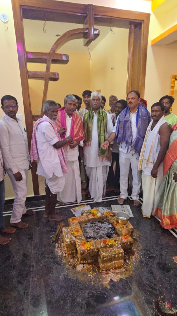 నేటి సాక్షి నారాయణపేట నవంబర్ 7, నారాయణపేట జిల్లాలోని నారాయణపేట ఎమ్మెల్యే డాక్టర్ చిట్టెం పర్ణిక రెడ్డి మరియు కుంభం శివకుమార్ రెడ్డి గారి ఆదేశాల మేరకు ధన్వాడ మండలం కాంసాన్ పల్లి గ్రామంలో మొదటి ఇందిరమ్మ ఇళ్ల గృహ ప్రవేశాన్ని ప్రారంభించిన మార్కెట్ చైర్మన్ శివారెడ్డి గారు అలాగే ఎమ్మెల్యే వ్యక్తిగత సహాయకులు చిట్టెం మాధవరెడ్డి గారూ,గ్రామ కాంగ్రెస్ పార్టీ నాయకులు తదితరులు పాల్గొనారు.