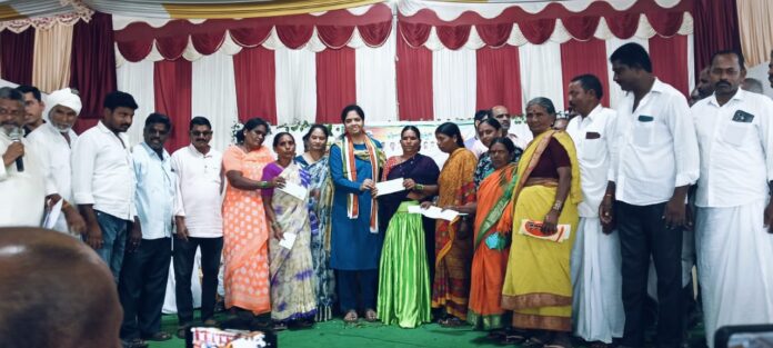 నేటి సాక్షి,నారాయణపేట, జూన్ 11, నారాయణపేట జిల్లాలోని ధన్వాడ మండల కేంద్రంలో షాదీ ముబారక్, లబ్ధిదారులకు పేట నియోజకవర్గం ఎమ్మెల్యే చిట్టెం పరిణికా రెడ్డి ఆధ్వర్యంలో పంపిణీ చేశారు. అదేవిధంగా ఇందిరమ్మ ఇండ్ల మంజూరైన పత్రాలను లబ్ధిదారులకు ఎమ్మెల్యే ఆధ్వర్యంలో పంపిణీ చేశారు. ఈ సందర్భంగా ఎమ్మెల్యే మాట్లాడుతూ ఇందిరమ్మ కాంగ్రెస్ ప్రభుత్వా హయాంలోనే నిరుపేదలకు మంజూరు చేయడం జరిగిందన్నారు. తెలంగాణ రాష్ట్ర ముఖ్యమంత్రి రేవంత్ రెడ్డి హయాంలో రాష్ట్రంలో ఉన్న నిరుపేదలను గుర్తించి సంక్షేమ పథకాలను మంజూరు చేయడం జరుగుతుందని ఆమె గుర్తు చేశారు. ఈ కార్యక్రమంలో నారాయణపేట జిల్లా హౌసింగ్ శాఖ అధికారి శంకర్, మార్కెట్ కమిటీ డైరెక్టర్ రామచంద్రయ్య, మాజీ సర్పంచ్ దామోదర్ రెడ్డి, శేఖర్ రెడ్డి లక్ష్మయ్య గౌడ్, తన్వాడ మండల కాంగ్రెస్ పార్టీ అధ్యక్షులు కావలి నరహరి, మండలాధికారులు నాయకులు కార్యకర్తలు తదితరులు పాల్గొన్నారు.
