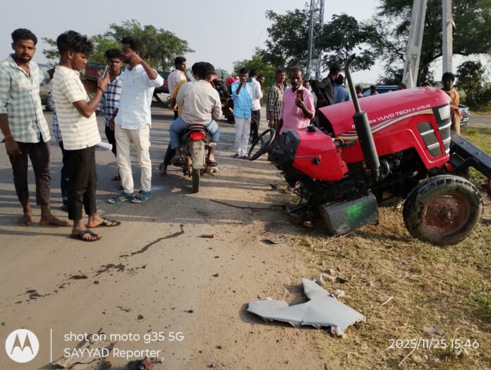నేటి సాక్షి నారాయణపేట నవంబర్ 25, నారాయణపేట జిల్లాలోని మరికల్ మండల పరిధిలోని కన్మనూరు గ్రామ స్టేజి సమీపంలో మంగళవారం నాడు కారు టాక్టరు ఢీకొన్న సంఘటనలో పలువురికి గాయాలు అయ్యాయి. గాయాలైన వారిని చికిత్స నిమిత్తం మహబూబ్నగర్ జిల్లా ఆసుపత్రికి తరలించారు. కేసు నమోదు చేసుకొని దర్యాప్తు చేస్తున్నట్లు మరికల్ పోలీసులు తెలిపారు.