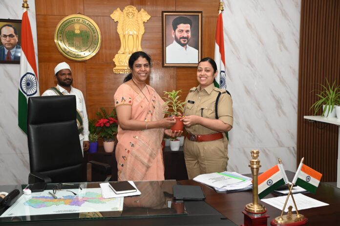 నేటి సాక్షి,కుమ్రం భీమ్ ఆసిఫాబాద్ జిల్లా ఎస్పీ శ్రీమతి నితిక పంత్ ఐపీఎస్ గారు ఈ రోజు జిల్లా కలెక్టర్ ఛాంబర్లో జిల్లా నూతన పాలనాధికారి శ్రీమతి కె. హరిత ఐఏఎస్ గారిని మర్యాదపూర్వకంగా కలిసి పూలమొక్క అందించి శుభాకాంక్షలు తెలిపారు.ఈ సందర్భంగా జిల్లాలో శాంతిభద్రతలు, అభివృద్ధి కార్యక్రమాలపై పరస్పర సహకారంతో ముందుకు సాగాలని వారు చర్చించుకున్నారు.