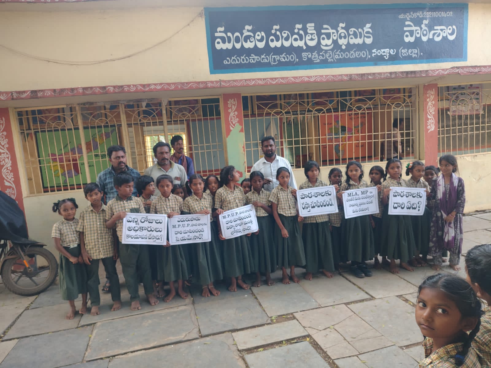 *కొత్తపల్లి మండలంలోని,ఎదురుపాడు గ్రామ “ప్రభుత్వ ఎంపీపీ స్కూల్ కు దారి చూపెట్టండి. సమతా సైనిక్ దళ్.నాయకుడు సగినాల.. సురేష్ విద్యార్థులతో కలిసి, దారి చూపాలని వేడుకుంటున్న సమతా సైనిక్ దళ్ జిల్లా ఉపాధ్యక్షుడు సగినాల.సురేష్… కొత్తపల్లె నవంబర్ ఎదురుపాడు
