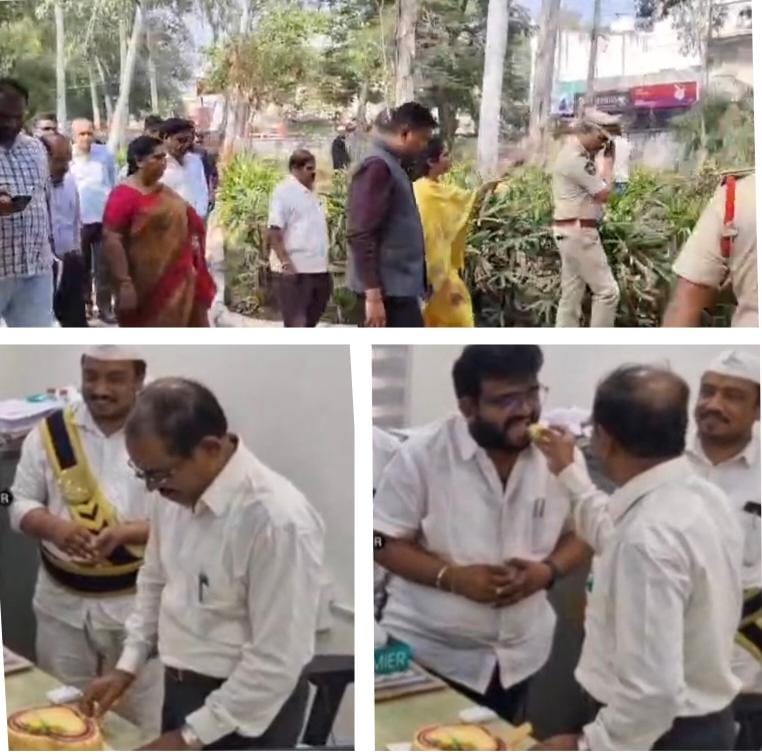 నేటి సాక్షి, అన్నమయ్య మదనపల్లి జిల్లా, శర్మ ÷అన్నమయ్య జిల్లా -:- మదనపల్లి జిల్లా కేంద్రంగా నూతనంగా ఏర్పాటైన అన్నమయ్య కలెక్టరేట్ అధికారులతో కళకళలాడుతోంది. గురువారం ఉదయం కలెక్టరేట్ కు జిల్లా కలెక్టర్ నిశాంత్ కుమార్, జిల్లా జాయింట్ కలెక్టర్ ఆదర్శరాజేంద్రన్, జిల్లా రెవెన్యూ అధికారి మధుసూదన రావులు కార్యాలయాలకు హాజరయ్యారు. వారిని కలవడానికి జిల్లాలోని 25 మండలాల నుంచి అన్ని శాఖల అధికారులు కలెక్టరేట్ కు వచ్చారు. కలెక్టర్, జేసీ, డిఆర్ఓలను మర్యాదపూర్వకంగా కలుసుకున్నారు. 2026 జనవరి 1 సందర్బంగా నూతన ఆంగ్ల సంవత్సర శుభాకాంక్షలు తెలియజేస్తూ స్వీట్లు పంచిపెట్టి ఒకరినొకరు శుభాకాంక్షలు తెలుపుకున్నారు..~~~~~~~~~~~~~~~~~