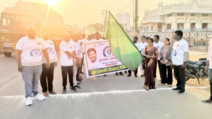 నేటి సాక్షి – కోరుట్ల*(రాధారపు నర్సయ్య)తెలంగాణ ప్రభుత్వం చేపట్టిన ‘99 రోజుల ప్రణాళిక’లో భాగంగా సోమవారం ఉదయం కోరుట్ల పట్టణంలో ‘2కే రన్’ను ఉత్సాహంగా నిర్వహించారు. స్థానిక కృష్ణా మందిరం వద్ద ప్రారంభమైన ఈ పరుగులో మున్సిపల్ చైర్పర్సన్ తిరుమల వసంత, మున్సిపల్ కమిషనర్ రవీందర్, కౌన్సిలర్లు, యువతీ యువకులు మరియు పట్టణ ప్రముఖులు పెద్ద సంఖ్యలో పాల్గొన్నారు.*పరిశుభ్రతపై అవగాహన*ఈ సందర్భంగా మున్సిపల్ చైర్పర్సన్ తిరుమల వసంత మాట్లాడుతూ.. పట్టణాన్ని స్వచ్ఛంగా ఉంచుకోవడంలో ప్రతి ఒక్కరూ భాగస్వాములు కావాలని పిలుపునిచ్చారు. రాష్ట్ర ప్రభుత్వం చేపట్టిన 99 రోజుల ప్రణాళికలో భాగంగా ప్రతి వార్డులో శ్రమదానం కార్యక్రమాలు నిర్వహించాలని, కౌన్సిలర్లు తమ వార్డుల్లో పర్యటిస్తూ ప్రజల్లో పరిశుభ్రతపై అవగాహన కల్పించాలని సూచించారు.*ఆదర్శ పట్టణంగా తీర్చిదిద్దాలి*మున్సిపల్ కమిషనర్ రవీందర్ మాట్లాడుతూ కోరుట్లను ఆదర్శ పట్టణంగా తీర్చిదిద్దడమే లక్ష్యమని తెలిపారు. ప్రజలు తమ ఇళ్ల వద్దే తడి, పొడి, హానికర చెత్తను వేరు చేసి మున్సిపల్ వాహనాలకు అందించాలని కోరారు. ప్లాస్టిక్ వినియోగాన్ని పూర్తిగా తగ్గించాలని, మార్కెట్కు వెళ్లేటప్పుడు ప్రతి ఒక్కరూ బట్ట సంచులను వెంట తీసుకెళ్లాలని విజ్ఞప్తి చేశారు.ఈ కార్యక్రమంలో మున్సిపల్ చైర్పర్సన్ తిరుమల వసంత, మున్సిపల్ కమిషనర్ రవీందర్, మున్సిపల్ కౌన్సిలర్లు, పురపాలక సంఘం సిబ్బంది, పట్టణ యువత, ప్రజలు పెద్ద సంఖ్యలో పాల్గొన్నారు. పట్టణంలో పరిశుభ్రతపై అవగాహన పెంచేందుకు ఇలాంటి కార్యక్రమాలు నిరంతరం నిర్వహిస్తామని నిర్వాహకులు తెలిపారు.__________