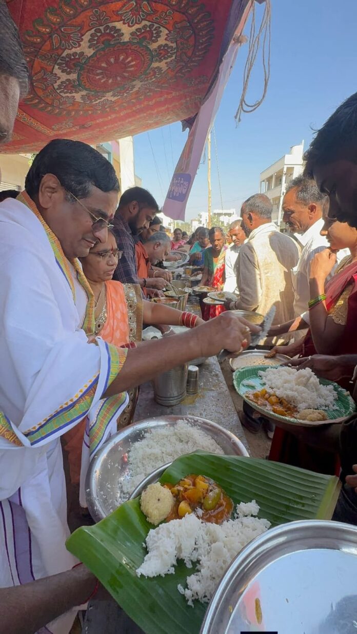 మావాస్యకు అన్నదానం కొనసాగిస్తామని నిర్వాహకుల ప్రకటన—*నేటి సాక్షి – కోరుట్ల*( రాధారపు నర్సయ్య )సనాతన ధర్మ ప్రచార సమితి ఆధ్వర్యంలో అన్నపూర్ణ అమావాస్య అన్నప్రసాద సేవ కార్యక్రమాన్ని కోరుట్ల పట్టణంలో ఘనంగా నిర్వహించారు. కల్లూరు రోడ్ సబ్స్టేషన్ సమీపంలోని శ్రీ హనుమాన్ దేవాలయం ఎదుట ఈ కార్యక్రమం భక్తుల ఆశీస్సులతో, దాతల సహకారంతో అత్యంత విజయవంతంగా ముగిసింది. ఈ సందర్భంగా సుమారు 1200 మందికి పైగా భక్తులు అన్నప్రసాదాన్ని స్వీకరించారు.*వైదిక పూజలతో ప్రారంభమైన సేవా కార్యక్రమం*కార్యక్రమానికి ముందు స్థానిక హనుమాన్ దేవాలయంలో అర్చకులు కృష్ణ పంతులు వైదిక నిర్వహణలో రుద్రాభిషేకం, అన్నపూజ, గోపూజ, అన్నపూర్ణ మాత పూజలను శాస్త్రోక్తంగా నిర్వహించారు. అనంతరం అన్నపూర్ణ మాత ఆశీస్సులతో అన్నప్రసాద వితరణ చేపట్టారు. అన్నదానం యొక్క మహత్తును చాటేలా ఈ కార్యక్రమం ప్రశాంత వాతావరణంలో భక్తి శ్రద్ధలతో సాగింది.*’ఎవరూ ఆకలితో ఉండకూడదు’అనే సేవా సంకల్పం*అమావాస్య రోజు పితృ దేవతల తృప్తి కోసం చేపట్టిన ఈ అన్నదాన కార్యక్రమం సమాజంలో సేవాభావాన్ని మరింత బలపరిచిందని నిర్వాహకులు తెలిపారు. అన్నప్రసాదం స్వీకరించిన భక్తుల ముఖాల్లో కనిపించిన సంతృప్తియే ఈ కార్యక్రమం యొక్క నిజమైన విజయమని వారు పేర్కొన్నారు.*ప్రతి అమావాస్యకు అన్నదానం కొనసాగింపు*ఈ సందర్భంగా సనాతన ధర్మ ప్రచార సమితి ప్రతినిధులు మాట్లాడుతూ, అన్నదానం అన్నింటిలోకెల్లా ఉత్తమ దానమని పేర్కొన్నారు. భవిష్యత్తులో కూడా ప్రతి అమావాస్య రోజున కోరుట్ల పట్టణంలోని ఏదో ఒక ప్రాంతంలో ఈ అన్నప్రసాద సేవను నిరంతరంగా కొనసాగిస్తామని వెల్లడించారు. ఈ పవిత్ర సేవా కార్యక్రమానికి సహకరించిన దాతలు, స్వచ్ఛంద సేవకులు, ఆలయ అర్చకులు, నిర్వాహకులకు సమితి హృదయపూర్వక కృతజ్ఞతలు తెలిపింది.ఈ కార్యక్రమంలో సనాతన ధర్మ ప్రచార సమితి అధ్యక్షులు మంచాల జగన్, అన్నపూర్ణ అమావాస్య అన్నప్రసాద సేవ కమిటీ చైర్మన్ వనపర్తి చంద్రమోహన్, కన్వీనర్ గంప శివకుమార్, కోశాధికారి మంచాల రమేష్, కమిటీ సభ్యులు కంఠం సదాశివ, పల్లెర్ల మహేందర్, కట్కం రంజిత్, సాడిగె మహేష్, కేజీ కృష్ణ, శ్రీపతి రమేష్, మంచాల రాజలింగం స్వామి తదితరులు పాల్గొన్నారు. అలాగే స్వచ్ఛంద సేవకులు ఆడెపు నరేష్, అల్లాడి ప్రవీణ్, చౌదరి పూర్ణిమ, పద్మ, అడ్డాల ప్రభాకర్, సమ్మెట మల్లయ్య, వనపర్తి లింగయ్య, కొత్త గణేష్, పిడుగు గుణాకర్ రెడ్డి, వనపర్తి ఆంజనేయులు, అల్లాడి మహేష్, నార్ల ప్రకాష్, తాటికొండ కృష్ణ ప్రహ్లాద్, ఎలిమి బుచ్చన్న, చెన్న నరహరి, తడక రాజు, వేముల సుజీత్, మిట్టపల్లి బుచ్చిరెడ్డి, చాడ శ్రీనివాస్, కూరగాయల శేఖర్, పిన్నం శెట్టి జనార్ధన్ తదితరులు సేవలందించారు.