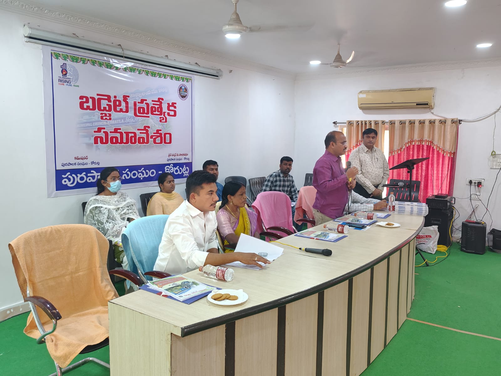 నేటి సాక్షి – కోరుట్ల* ( రాధారపు నర్సయ్య )కోరుట్ల పురపాలక సంఘ కార్యాలయంలో మున్సిపల్ చైర్పర్సన్ అధ్యక్షతన కౌన్సిల్ సాధారణ సమావేశం నిర్వహించారు. సమావేశంలో పట్టణ అభివృద్ధికి సంబంధించిన పలు అంశాలను చర్చించి నిర్ణయాలు తీసుకున్నారు.అయితే తొలి సమావేశంలోనే రగడ మొదలైంది.*కాంగ్రెస్ కౌన్సిలర్ ల వాకౌట్.!*మున్సిపల్ బడ్జెట్ సమావేశంపై ప్రస్తుత కౌన్సిలర్ లు,మాజీ మున్సిపల్ చైర్మన్,ఛైర్ పర్సన్ లు అభ్యంతరం తెలిపి వాకౌట్ చేశారు.మున్సిపల్ చట్టం ప్రకారం ఏడు రోజుల ముందు సభ్యులకు సమాచారం ఇవ్వాల్సి ఉండగా..కేవలం రెండు రోజుల ముందే ఇవ్వడం సరికాదని అన్నం లావణ్య,గడ్డమీది పవన్ లు ఆరోపించారు.ఈ క్రమంలోనే 23 వార్డుకు మాత్రమే రూ.3.5 లక్షలు కేటాయించడంపై సభలో గందరగోళం జరిగింది.కోరుట్ల మున్సిపాలిటీ పరిధిలో 33 వార్డులుంటే..ఒక్క 23 వ వార్డుకు మాత్రమే ప్రేమ చూపడంలో ఆంతర్యమేంటని సభ్యులు తీవ్రస్థాయిలో ధ్వజమెత్తారు.దీంతో ఛైర్ పర్సన్ అన్ని వార్డులకు సమానంగా రూ.3.5లక్షల చొప్పున నిధులు కేటాయిస్తున్నట్టు ఆమోదం తెలిపారు.*కౌన్సిల్ సమావేశంలో నిర్ణయాలు*కోరుట్ల పురపాలక సంఘ కార్యాలయం సమావేశ మందిరంలో నిర్వహించిన కౌన్సిల్ సాధారణ సమావేశంలో మొత్తం 35 అంశాలను అజెండాగా పొందుపరిచారు. వాటిలో 34 అంశాలకు కౌన్సిల్ సభ్యులు ఆమోదం తెలిపారు.సమావేశంలో పట్టణంలోని అన్ని వార్డుల్లో మురికి కాలువలను శుభ్రం చేయడానికి తగిన చర్యలు తీసుకోవాలని వార్డు సభ్యులు కోరారు. కాలువలు శుభ్రం చేయడం ద్వారా పట్టణంలో పరిశుభ్రత మెరుగుపడుతుందని సభ్యులు అభిప్రాయపడ్డారు.*ప్రజా పాలన ప్రగతి ప్రణాళికలో పనులు*ఈ సందర్భంగా మున్సిపల్ చైర్పర్సన్ తిరుమల వసంత మాట్లాడుతూ.. ‘ప్రజా పాలన ప్రగతి ప్రణాళిక’ కార్యక్రమంలో భాగంగా పట్టణంలోని అన్ని వార్డుల్లో మురికి కాలువల శుభ్రపరిచే పనులు చేపడుతున్నట్లు తెలిపారు.ఈ సమావేశంలో మున్సిపల్ చైర్పర్సన్ వసంత, మున్సిపల్ వైస్ చైర్మన్ షాహెద్, కౌన్సిల్ సభ్యులు, మున్సిపల్ కమిషనర్, డిప్యూటీ ఈఈ, మేనేజర్, జేఏఓతో పాటు కార్యాలయ సిబ్బంది పాల్గొన్నారు._______