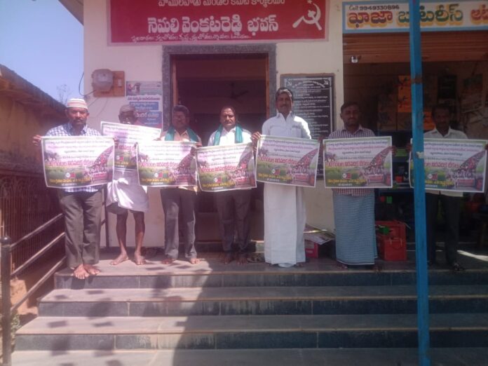 నేటి సాక్షి 20 ఫిబ్రవరి పాములపాడు :–అన్నదాత సుఖీభవ పథకం క్రింద కౌలు రైతులకు 20వేల రూపాయలు ఇచ్చి వెంటనే కౌలు రైతులను ఆదుకోవాలని కౌలు రైతు సంఘం జిల్లా ఉపాధ్యక్షులు డి సోమన్న ప్రభుత్వాన్ని డిమాండ్ చేశారు స్థానిక సిపిఎం కార్యాలయం దగ్గర గోడపత్రికలు విడుదల చేశారు ఈ సందర్భంగా ఆయన మాట్లాడుతూ ఈనెల 23 24 తేదీలలో జిల్లా కలెక్టర్ రేట్ వద్ద జరిగే 30 గంటల దీక్షలలో కౌలు రైతులు పెద్ద ఎత్తున పాల్గొనాలని పిలుపునిచ్చారు వ్యవసాయంలో ప్రతి ఏటా సాగు ఖర్చులు బాగా పెరిగిపోయాయని తీరా పంటలను పండించిన తర్వాత గిట్టుబాటు ధర లేక రైతులు ఆత్మకు పాల్పడుతున్నారని ఆవేదన వ్యక్తం చేశారు ఒక వైపు ధరలు పెరుగుతూ ఉంటే మరోవైపు ప్రభుత్వం రైతులకు ఇచ్చే రాయితీలలో కోతలు విధిస్తుందని ఆందోళన వ్యక్తం చేశారు కేంద్ర ప్రభుత్వం ప్రధానమంత్రి కిసాన్ యోజన పథకం కింద సంవత్సరానికి 6000 రూపాయలు రాష్ట్ర ప్రభుత్వం 14000 రూపాయలు మొత్తం 20 వేల రూపాయలు ఇస్తామని చెప్పి ఎన్నికల్లో వాగ్దానం చేసినటువంటి ముఖ్యమంత్రి చంద్రబాబు అమలు చేయకపోవడం దుర్మార్గమైనటువంటి చర్య అని పేర్కొన్నారు ప్రధానంగా భూమి మీద 60 శాతం మంది కౌలు రైతులు వ్యవసాయం చేస్తున్నప్పటికీ పెట్టుబడి సాయం అందకపోవడం వలన కౌలు రైతులు పూర్తిగా నష్టపోతున్నారన్నారు దేవదాయ భూములు కౌలు సాగు చేస్తున్న కౌలు రైతులందరికీ పంటలు లేకపోవడం వల్ల అధిక వడ్డీలకు అప్పులు తెచ్చి పెట్టుబడి పెట్టి పంట చేతికి రాక కౌలు రైతుల ఆత్మహత్యలు కొనసాగుతున్నాయన్నారు రైతులు ఆత్మ హత్యలను ఎన్నోసార్లు ప్రభుత్వాలకు నివేదించిన ప్రభుత్వాలకు చిత్తశుద్ధి లేదన్నారు ఇప్పటికైనా ప్రభుత్వం కౌలు రైతులకు అన్నదాత సుఖీభవ 20000 రూపాయలు ఇవ్వాలని ప్రభుత్వాన్ని డిమాండ్ చేశారు. ఈ కార్యక్రమంలో రైతు సంఘం జిల్లా నాయకులు కోట్ల నాగేశ్వర్ రెడ్డి రజక సంఘం జిల్లా ఉపాధ్యక్షులు రామకృష్ణ వ్యవసాయ కార్మిక సంఘం జిల్లా నాయకులు ఎస్ బాలయ్య శివన్న జాన్ బాబు మక్బుల్ తదితరులు పాల్గొన్నారు