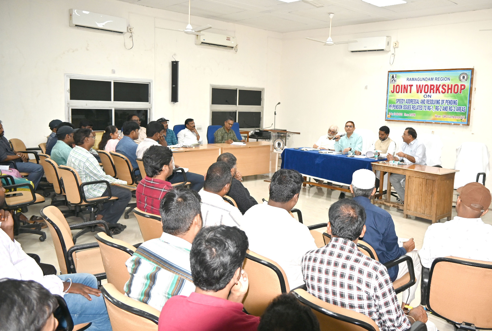 రామగుండం ఏరియా-1 సమావేశ హాల్ నందు అర్జీ. 1,2,3 ఏరియాలకు సంబందించిన “సిఎంపిఎఫ్ జాయింట్ వర్క్ షాప్” మీటింగ్ నిర్వహించటం జరిగింది. ప్రావిడెంట్ ఫండ్ & పెన్షన్ సంబందించిన పెండింగ్ సమస్యల పరిష్కారం కోసం సమీక్ష సమావేశం నిర్వహించటం జరిగింది. ఇట్టి సమీక్ష సమావేశం నిర్వహించటం జరిగింది. ఇట్టి సమీక్షా సంవేశంలో రిజియనల్ కమిషనర్ సిఎంపిఎఫ్, గోదావరిఖని శ్రీ హరి పచౌరి రిజియనల్ కమిషనర్ సిఎంపిఎఫ్ గోవర్దన్. ముఖ్య అతిథులుగా హాజరు అయ్యారు.