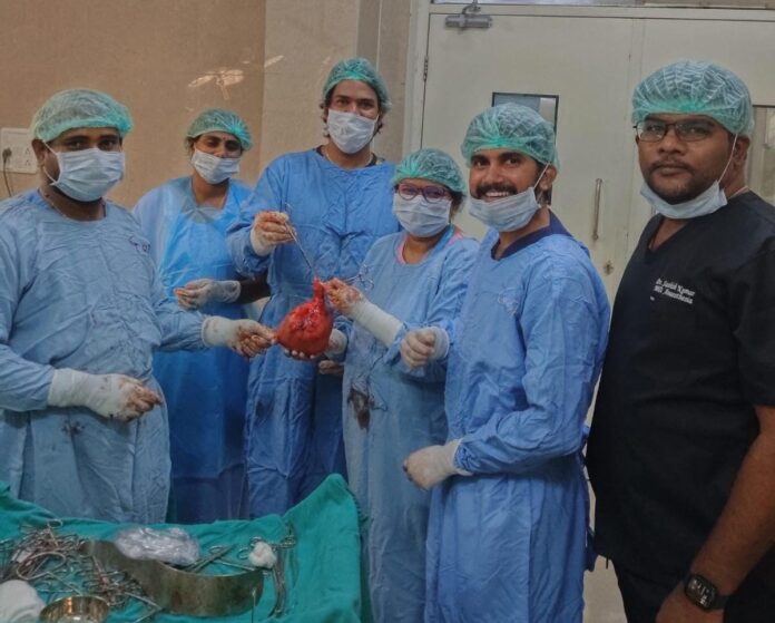 నేటి సాక్షి గజ్వేల్ : గజ్వేల్లోని జిల్లా ఆసుపత్రిలో వైద్యులు అరుదైన గర్భాశయ ఫైబ్రాయిడ్ (లియోమయోమాస్) శస్త్రచికిత్సను విజయవంతంగా నిర్వహించారు. హైదరాబాద్కు చెందిన 43 సంవత్సరాల మహిళ గర్భాశయంలో 24 వారాల గర్భ పరిమాణంతో సమానంగా పెరిగిన 13x11x10 సెం.మీ. పరిమాణంలోని భారీ ఫైబ్రాయిడ్ను గుర్తించి శస్త్రచికిత్స చేపట్టారు.వైద్యులు టోటల్ అబ్డామినల్ హిస్టరెక్టమీ (TAH) విధానంలో ఆ కణితిని సురక్షితంగా తొలగించారు. క్లిష్టమైన ఈ ఆపరేషన్ను డాక్టర్ త్రివేణి, డాక్టర్ ప్రవీణ్, డాక్టర్ ప్రేమ్ కిషోర్, అనస్థీషియా నిపుణుడు డాక్టర్ మైపాల్, డాక్టర్ సతీష్ కుమార్, నర్సింగ్ సిబ్బంది సునీత, సునీల్, థియేటర్ అసిస్టెంట్లు సిహెచ్ వెంకట్ రాజకుమార్, పి.రాజు, అస్ర, పేషంట్ కేర్ యాదమ్మ తదితరులు సమన్వయంతో నిర్వహించారు.ఆసుపత్రి సూపరింటెండెంట్ డాక్టర్ అన్నపూర్ణ మాట్లాడుతూ గర్భాశయ ఫైబ్రాయిడ్లు మహిళల్లో సాధారణంగా కనిపించినప్పటికీ ఇంత పెద్ద పరిమాణంలో ఉండటం అరుదని తెలిపారు. సుమారు 30 శాతం మహిళల్లో అసాధారణ గర్భాశయ రక్తస్రావం, కడుపు నొప్పి, రక్తహీనత, పొత్తికడుపు నిండిన భావన, తరచూ మూత్ర విసర్జన, నడుము నొప్పి, సంతానలేమి వంటి లక్షణాలు కనిపించే అవకాశముందని చెప్పారు. ఇలాంటి సమస్యలు ఉన్నవారు ఆలస్యం చేయకుండా వైద్యులను సంప్రదించాలని సూచించారు.శస్త్రచికిత్స విజయవంతం కావడంతో రోగి కుటుంబ సభ్యులు వైద్య బృందానికి కృతజ్ఞతలు తెలిపారు.