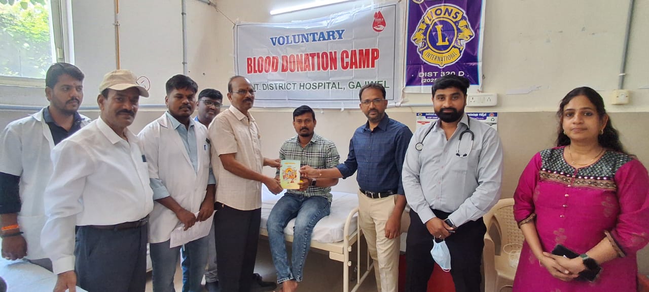 నేటి సాక్షి గజ్వేల్ :—-ప్రపంచ ఆరోగ్య దినోత్సవాన్ని పురస్కరించుకొని గజ్వేల్ ప్రభుత్వ జిల్లా కేంద్ర ఆసుపత్రిలో మంగళవారం భారీ రక్తదాన శిబిరాన్ని నిర్వహించారు. ఆసుపత్రి ఆర్ఎంవో డా.రాము శిబిరాన్ని ప్రారంభించి రక్తదాతలను అభినందించారు.ఈ సందర్భంగా ఆయన మాట్లాడుతూ రక్తదానం మహాదానమని, అన్ని దానాల్లో ప్రాణదానం మిన్న అని పేర్కొన్నారు. ప్రమాదాలు, శస్త్రచికిత్సలు, ప్రసవ సమయాల్లో రక్తం అందక ఎంతోమంది ప్రాణాలు కోల్పోతున్నారని తెలిపారు. అటువంటి పరిస్థితుల్లో ప్రాణాలను కాపాడేందుకు రక్తదాన శిబిరాలు ఎంతో కీలకమని అన్నారు. రక్తాన్ని కృత్రిమంగా తయారు చేయలేమని, దానం ద్వారానే రక్తం లభిస్తుందని వివరించారు. రక్తదానం పూర్తిగా సురక్షితమని, ఆరోగ్యానికి హానికరం కాదని స్పష్టం చేశారు. శిబిరంలో మొత్తం 32 యూనిట్ల రక్తాన్ని సేకరించినట్లు వెల్లడించారు.ఈ కార్యక్రమంలో ముఖ్య అతిథిగా పాల్గొన్న లయన్స్ క్లబ్ ఆఫ్ స్నేహ వైస్ ప్రెసిడెంట్ డా.కుమార్ స్వామి మాట్లాడుతూ ప్రజల్లో రక్తదానంపై మరింత అవగాహన పెరగాల్సిన అవసరం ఉందన్నారు. ప్రతి ఒక్కరూ స్వచ్ఛందంగా ముందుకు వచ్చి ప్రాణదాతలుగా నిలవాలని పిలుపునిచ్చారు. లయన్స్ క్లబ్ ఆధ్వర్యంలో రక్తదాతలకు పండ్లు, జ్యూస్ పంపిణీ చేసినట్లు తెలిపారు.ఈ కార్యక్రమంలో ఆర్ఎంవో-2 డా.ప్రణీత, బ్లడ్ బ్యాంక్ ఇన్చార్జ్ డా.భవాని, జనరల్ ఫిజీషియన్ డా.సుమన్, హెల్త్ ఇన్స్పెక్టర్ లక్ష్మి, హెడ్ నర్సులు ఉమామహేశ్వరి, రోజులిన్, బ్లడ్ బ్యాంక్ సిబ్బంది దేవేందర్, నర్సింగ్ ఆఫీసర్లు బాలకిషన్, శ్రీనివాస్, నవీన్, ల్యాబ్ టెక్నీషియన్లు రాజు, కరుణాకర్, గౌతమ్, మహేందర్, నజీర్ అహ్మద్, హెల్త్ అసిస్టెంట్ దేవసాని వాసుదేవ్, ఆరోగ్యమిత్ర సురేందర్, గజ్వేల్ యువజన సంఘం అధ్యక్షుడు తలకొక్కుల ప్రేమ్ కుమార్, అపన్న హస్తం ప్రధాన కార్యదర్శి కటుకం శ్రీనివాస్, తదితరులు పాల్గొన్నారు.