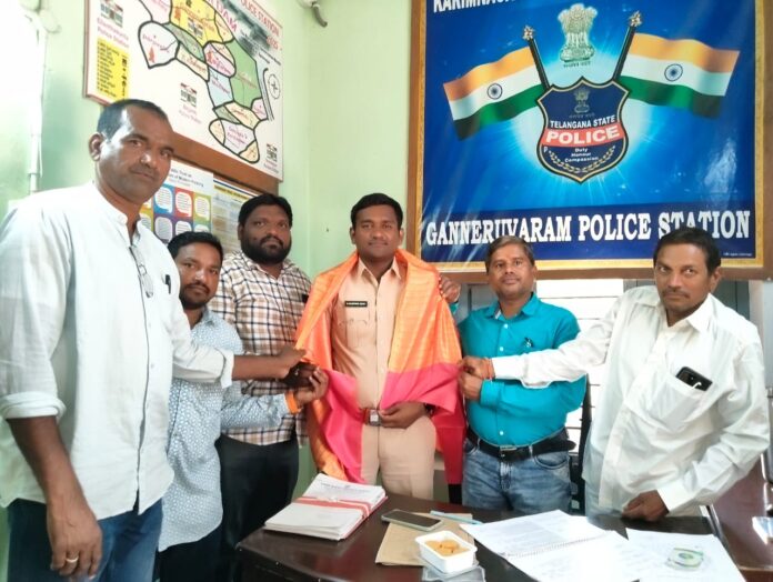 నేటి సాక్షి: గన్నేరువరం,(బుర్ర అంజయ్య గౌడ్): గన్నేరువరం మండలానికి నూతనంగా వచ్చిన ఎస్సై జి. నరేందర్ రెడ్డి ని గన్నేరువరం మండల ప్రెస్ క్లబ్ అధ్యక్షుడు మాదరి శ్రీనివాస్ ఆధ్వర్యంలో పాత్రికేయ మిత్రులతో గురువారం రోజున మర్యాదపూర్వకంగా కలసి ఘనంగా శాలువాతో సత్కరించి శుభాకాంక్షలు తెలిపారు. ఈ కార్యక్రమంలో బుర్ర అంజయ్య గౌడ్,తేళ్ల రవీందర్, బోడ ప్రతాప్ రెడ్డి, బుర్ర కోటేష్ గౌడ్, బుర్ర రాజ్ కోటి గౌడ్, మరియు పాత్రికేయ మిత్రులు పాల్గొన్నారు…