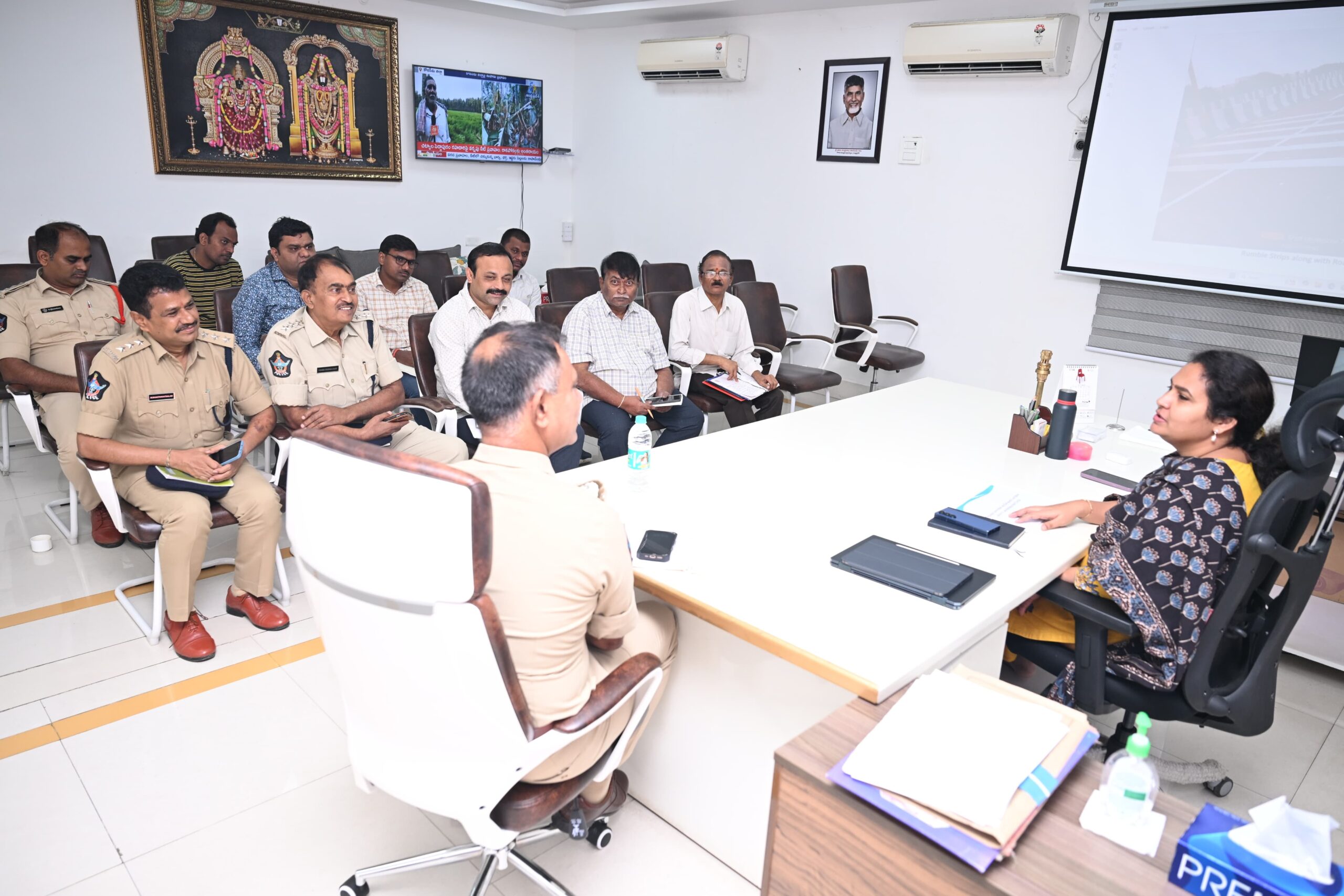 నేటి సాక్షి తిరుపతి (బాదూరు బాల)తిరుపతి నగరంలోని గరుడవారధి పై వేగ నియంత్రణకు మరిన్ని అదనపు చర్యలు చేపట్టాలని స్మార్ట్ సిటీ మేనేజింగ్ డైరెక్టర్, నగరపాలక సంస్థ కమిషనర్ ఎన్.మౌర్య అధికారులను ఆదేశించారు. గరుడవారధి పై వాహనాల వేగ నియంత్రణ కొరకు స్మార్ట్ సిటీ, పోలీస్, ఇంజనీరింగ్ అధికారులతో గురువారం సమన్వయ సమావేశం నిర్వహించారు. ఈ సందర్బంగా మేనేజింగ్ డైరెక్టర్ మాట్లాడుతూ గరుడవారధి పై ప్రమాదాలు జరగకుండా ఇప్పటికే ఏర్పాటు చేశామని తెలిపారు. వాహన చోదకుల్లో మరింత అవగాహన కలిగించేలా ఏర్పాటు చేయాలన్నారు. ముఖ్యంగా వేగాన్ని నియంత్రించే రబ్బర్ స్ట్రిప్స్, మలుపు తెలుపుతూ సూచిక బోర్డులు, బ్లింకర్స్, స్పీడ్ లిమిట్ బోర్డులు మరిన్ని ఏర్పాటు చేయాలని సూచించారు. అలాగే గరుడవారధి పైన, కింద ట్రాఫిక్ నియంత్రణ కొరకు చేయాల్సిన ఏర్పాట్లపై చర్చించారు. ఈ సమావేశంలో ఏఎస్పీ రవిమనోహర్ ఆచారి, డి.ఎస్.పి. లు రామకృష్ణ ఆచారి, భక్తవత్సలం, స్మార్ట్ సిటీ జనరల్ మేనేజర్ చంద్రమౌళి, సూపరింటెండెంట్ ఇంజినీర్ శ్యాంసుందర్, ఈ.ఈ. రవి, ఆఫ్కాన్స్ ప్రతినిధి రంగస్వామి, తదితరులు పాల్గొన్నారు.