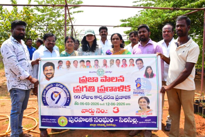 *నేటి సాక్షి సిరిసిల శివకుమార్* గృహ అవసరాలకు సైతం ఉపయోగపడే మొక్కలను నర్సరీల్లో పెంచాలని మున్సిపల్ అధికారులను కలెక్టర్ గరిమ అగ్రవాల్ ఆదేశించారు. ప్రగతి ప్రణాళికలో భాగంగా సిరిసిల్ల పట్టణంలోని సాయి నగర్, జే పీ నగర్ లో సిరిసిల్ల మున్సిపల్ ఆధ్వర్యంలో ఏర్పాటు చేసిన నర్సరీలను కలెక్టర్ శనివారం పరిశీలించారు.ఈ సందర్భంగా ఆయా నర్సరీల్లో ఎన్ని రకాలు, ఎన్ని మొక్కలు పెంచుతున్నారనే వివరాలు అడిగి తెలుసుకున్నారు. నర్సరీ మొత్తం పరిశీలించి అధికారులకు పలు సూచనలు చేశారు. ఈ సందర్భంగా కలెక్టర్ గరిమ అగ్రవాల్ మాట్లాడుతూ.. సిరిసిల్ల మున్సిపల్ ఆధ్వర్యంలోని నర్సరీలో రోడ్ల వెంట, అలాగే ఇతర చోట్ల నాటే మొక్కలతో పాటుగా గృహ వినియోగానికి ఉపయోగపడే మొక్కలు సైతం పెంచాలని సూచించారు.మునగ, పండ్ల, ఇతర రకాల మొక్కలను నర్సరీల్లో సిద్ధంగా ఉంచాలని ఆదేశించారు. ఎండాకాలం నేపథ్యంలో మొక్కలకు నీటిని పడుతూ సంరక్షించాలని సూచించారు. ప్రభుత్వ ఆదేశాలకు అనుగుణంగా ప్రణాళిక ప్రకారం మొక్కలను సిద్ధంగా ఉంచాలని స్పష్టం చేశారు. పరిశీలనలో మున్సిపల్ చైర్ పర్సన్ జిందం కళ ఆర్డిఓ వెంకటేశ్వర్లు, మున్సిపల్ కమిషనర్ ఖదీర్ పాషా, అధికారులు, సిబ్బంది తదితరులు ఉన్నారు.