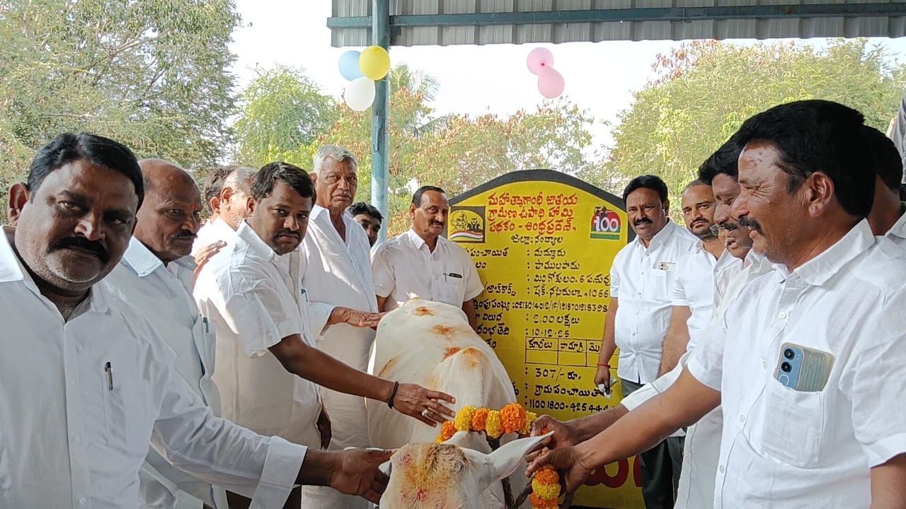 నేటి సాక్షి 27 ,డిసెంబరు పాములపాడు :—గ్రామీణ ప్రాంతాల్లో గోకులం షెడ్లతో రైతులకు ఎంతో ప్రయోజనం చేకూరుతుందని నందికొట్కూరు ఎమ్మెల్యే గిత్త జయసూర్య అన్నారు.శనివారం మండలంలోని మద్దూరు గ్రామంలో రూ.10 లక్షలతో ఐదు మినీ గోకులం షెడ్లను నందికొట్కూరు శాసనసభ్యులు గిత్త జయసూర్య,నందికొట్కూరు సీనియర్ నాయకులు మాండ్ర సురేంద్ర నాథ్ రెడ్డిలు ప్రారంభించారు.ఈ సందర్భంగా ఎమ్మెల్యే గిత్త జయసూర్య మాట్లాడుతూ కూటమి ప్రభుత్వం ఎంతో ప్రతిష్టాత్మకంగా రైతుల సంక్షేమం, పాడి పశువుల అభివృద్ధి కోసం రాయితీ కింద చేపట్టిన గోకులం షెడ్ల నిర్మాణాలతో రైతులకు ఎంతో ప్రయోజనం ఉందని అన్నారు.ఈ కార్యక్రమంలో కూటమి నాయకులు కార్యకర్తలు ప్రభుత్వ అధికారులు పాల్గొనడం జరిగింది.